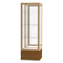 Waddell's Keepsake Series display cases are rugged repositories for archival-quality collections, ideal for museums and historical societies. The aluminum-framed case features adjustable shelves, a locking hinged door, tempered glass, and floor levelers. - Waddell Keepsake Series Display Case - 24", Light Oak/Gold, Mirror Back.