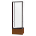 Waddell's Keepsake Series display cases are rugged repositories for archival-quality collections, ideal for museums and historical societies. The aluminum-framed case features adjustable shelves, a locking hinged door, tempered glass, and floor levelers. - Waddell Keepsake Series Display Case - 24", Carmel Oak/Dark Bronze, Clear Back.