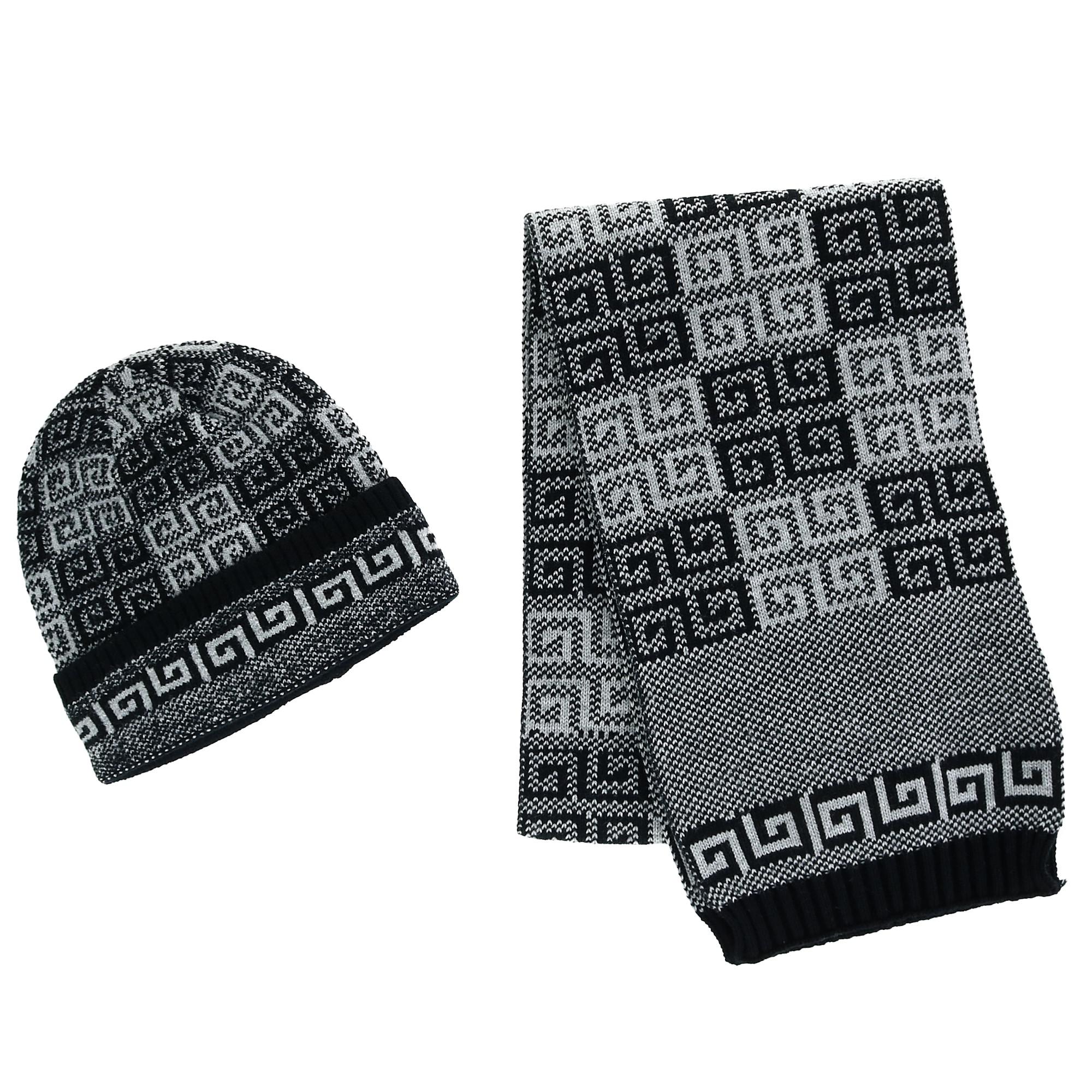 CTM Men's Ribbed Knit Cuff Cap with Sherpa Lining and Matching Scarf