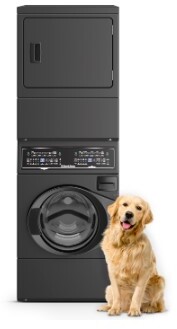 Gas Laundry Center with 3.5 cu. ft. Washer Capacity, 7.0 cu. ft. Dryer Capacity, 11 Preset Washer Cycles, 10 Preset Dryer Cycles, Dynamic Balancing, Oxi Cycle, Moisture Sensor, End-of-Cycle Signal, Time Remaining Display, 1200 RPM, Control Lock, and Stainless Steel Tub: Matte Black. Choose from Heavy Duty, Whites, Normal, Pet Plus Flea Cycle, Perm Press, Delicate, Bedding, Quick Wash, Sanitize with Oxi, Spin, Tub Clean. Choose from Heavy Duty, Regular, Perm Press, Delicates, Pet Items, Pet Hair Remover, Steam Sanitize, Steam Refresh, Time Dry, Quick Dry and Fluff Up. Commercial quality means running all cycles to completion even the most out-of-balance ones. We do this with a combination of commercial components and technology others can't match. With a sanitize with Oxi cycle, you'll have another tool to drive to that goal. A moisture sensor helps to determine the duration of a dry cycle in order to prevent over-drying and to help conserve energy. Get an alert when the dryer has gotten the job done. Eliminates guesswork by clearly showing when your laundry will be finished. 1200 RPM. 220 CFM. Allows you to lock the control system, preventing children from starting the machine. A tub that is gentler on your clothes and ensures long-lasting, dependable performance. Color: Matte Black. Capacity: 3.5 cu. ft. Max Spin Speed: 1200 RPM. Stainless Steel Outer Draintub: Yes. Preset Cycles: 11. Temperature Selections: 4. Time Remaining Display: Yes. Cycle Indicator Light: Yes. End of Cycle Signal: Yes. Soil Level Selection: 4. Prewash: Yes. Soak: Yes. Extra Rinse: Yes. Delay Start: Yes. Capacity: 7.0 cu. ft. Commercial Steel Cylinder: Yes. Secured Lint Filter: Yes. Automatic Dry Cycles: 4. Temperature Selections: 4. Moisture Sensor: Yes. Time Remaining Display: Yes. Quiet, Efficient Blower: Yes. Favorite Cycles: Yes. ENERGY STAR: Yes. Amps: 30A. Volts: 110V. Parts & Labor: 5 Years. Warranty Description: https://speedqueen.com/speed-queen-difference/#warranty. Width: 26 7/8". Height: 78 1/8". Depth: 27 3/4". Overall Depth with Door and Hose: 31 3/8". Weight: 417 lbs.