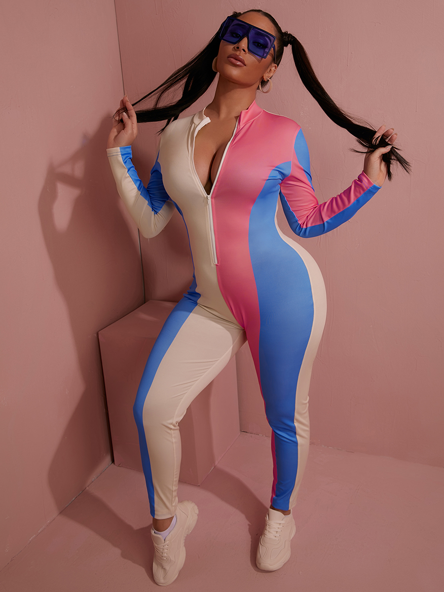 Buy LW Color-lump Zipper Design Jumpsuit for $15.29 at @ Lovelywholesale.com