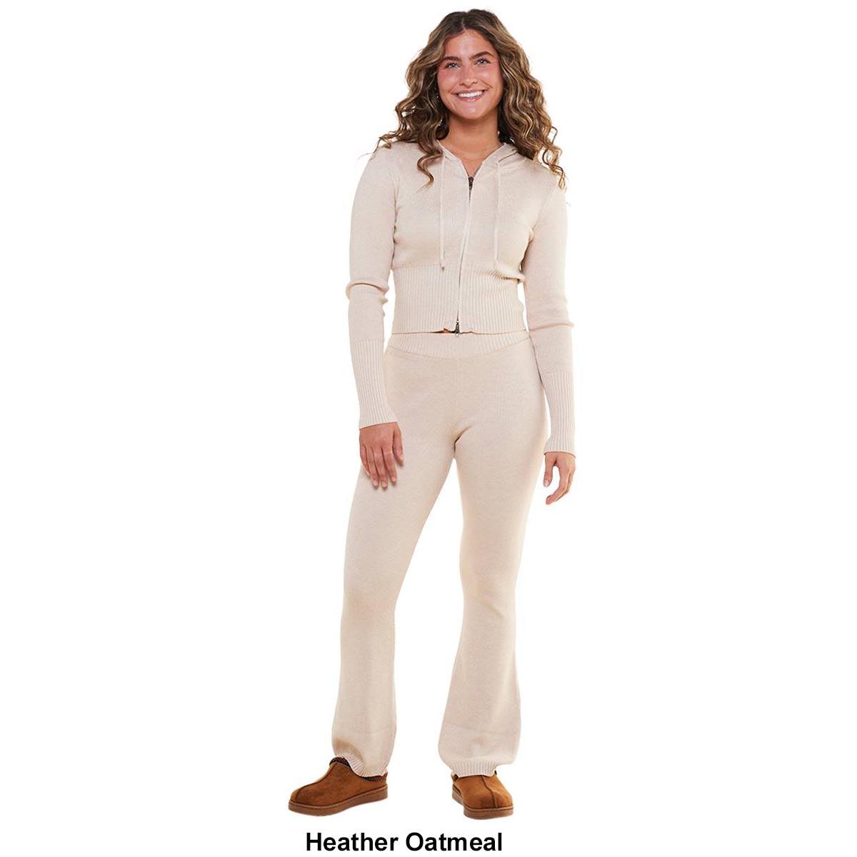 Juniors Pink Rose 2 Way Zip Hoodie Sweater & Flare Pants Set