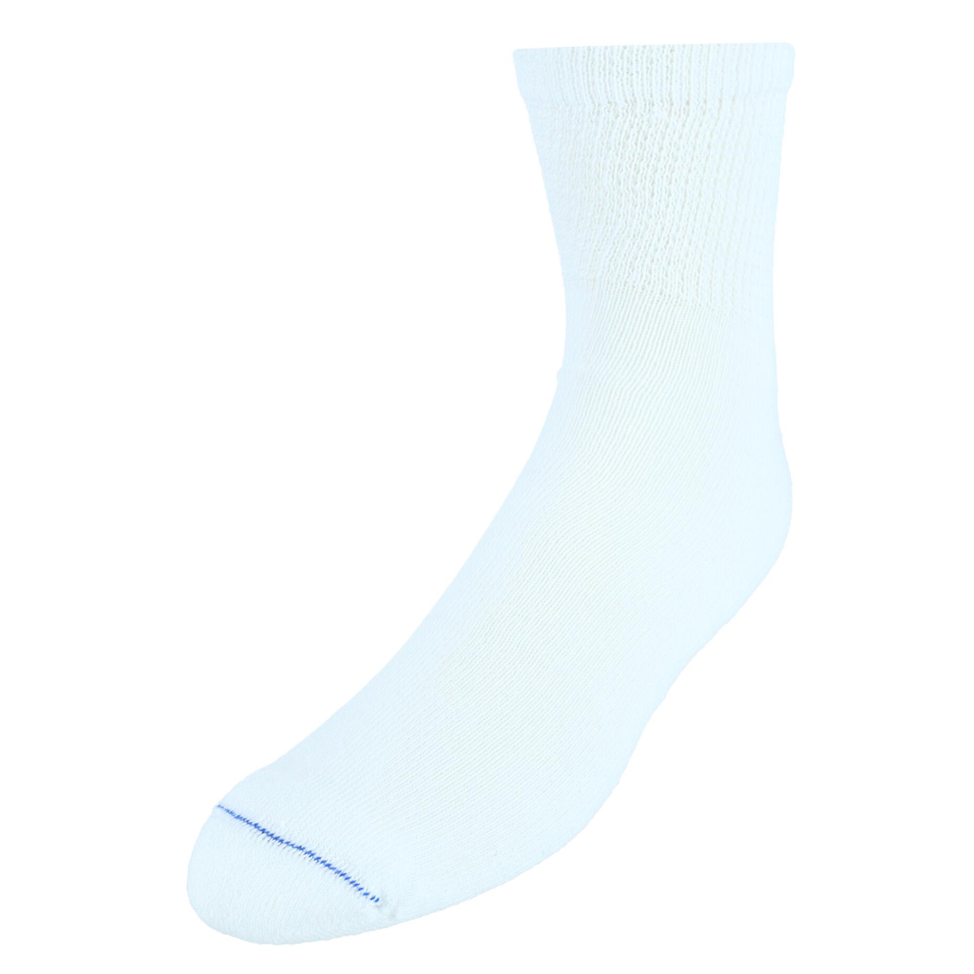 These ankle length socks were designed for men with diabetes or circulatory challenges. The loose fit non binding top is ideal for swollen ankles and sensitive feet.. These quality socks also feature cushioned soles in addition to helping with moisture and odor for fresh dry feet all day. Accepted by the American Podiatric Medical Association. Value pack of 4 pair. Moisture and odor control. Non binding tops with cross stretch for comfort. Cushioned soles and smooth toe seams. Fits men's shoe sizes 13-15.