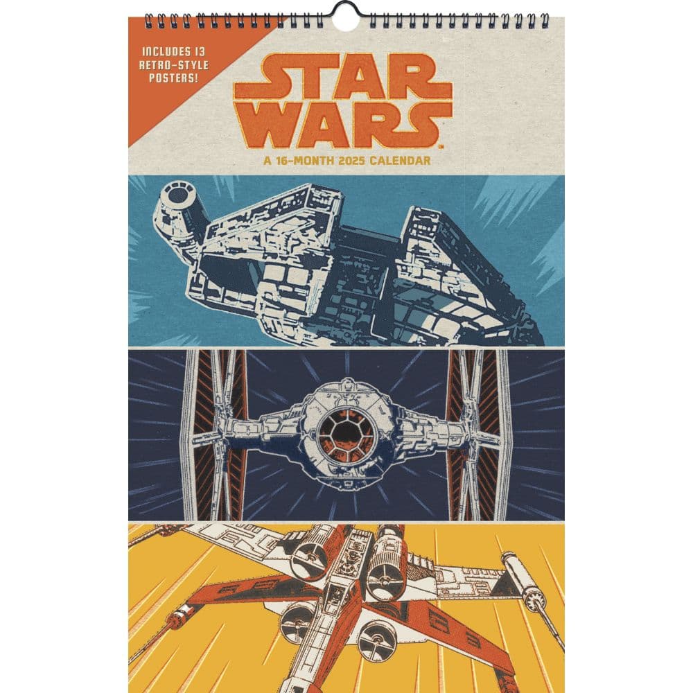 Journey through the Star Wars universe with the Star Wars 2025 Poster Wall Calendar, featuring 13 retro-style posters that bring iconic characters and scenes to your space. This 16-month calendar, starting from September 2024, is perfect for fans looking to organize their year while enjoying high-quality Star Wars artwork. Each month showcases a unique, collectible poster, making this calendar a must-have for any Star Wars enthusiast. Includes 13 retro-style Star Wars posters, perfect for decorating your space after each month Spiral binding allows the calendar to lay flat on the wall, ensuring easy viewing and a neat display Large grid size for each month, providing ample space for writing important dates and appointments Starts from September 2024 and spans until December 2025, covering 16 months of galactic adventures Each page is perforated for easy removal, allowing you to preserve your favorite posters as keepsakes This calendar not only helps you stay organized but also serves as a collector's item with its unique retro poster designs featuring beloved characters and vehicles from the Star Wars saga. The spiral-bound design and built-in hanger make it easy to display anywhere in your home or office. Secure your copy of the Star Wars 2025 Poster Wall Calendar today and keep your love for the galaxy far, far away visible all year round!.