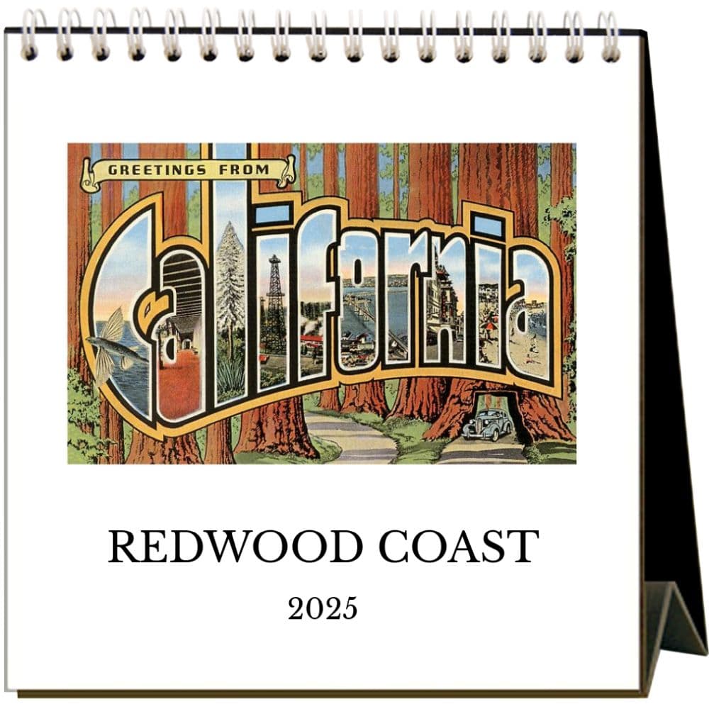 Step into a bygone era with the 2025 Vintage Redwood Coast Easel Desk Calendar by Found Image Press. This elegantly designed calendar captures the historic charm and natural beauty of California's Redwood Coast through a collection of vintage postcard-style illustrations from 1910 to 1950. Perfect for art enthusiasts and history buffs alike, this calendar is a stylish and practical addition to any desk or office space. Compact 6 x 6.75 inch size, ideal for small desks or limited spaces Durable Wire-O binding for easy month-to-month flipping Features 12 months of captivating, vintage-inspired illustrations of the Redwood Coast Includes major U.S. holidays, perfect for planning and staying organized Proudly made in the USA with high-quality, recycled paper Each month presents a unique, nostalgic artwork that brings to life the majestic landscapes and historical sites of the Redwood Coast. From towering redwoods to quaint coastal towns, relive the golden days of yesteryear every day. This calendar not only serves as a functional planner but also as a piece of art that offers a daily escape to a picturesque past. Celebrate the enduring beauty of the Redwood Coast and keep your days organized. Order your 2025 Vintage Redwood Coast Easel Desk Calendar today and add a touch of historical elegance to your daily routine!.