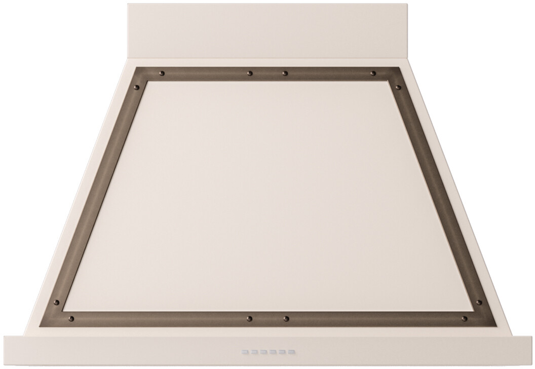 Wall Mount Range Hood with 3-Speeds + Intensive, 600 CFM, Front LED Bar, Anodised Aluminium Filters, and Delay Shut-Off: Antique White, Bronze Trim. 3-speed including intensive mode provides 600 cfm (850 cfm on select models) to remove smoke and heat to keep your kitchen fresh. Illuminates your cooking area for enhanced visibility. Range hood filter made with high-quality anodized aluminum, is designed to capture and hold airborne grease released from cooking. Leave the kitchen after you are done cooking and let the hood continue removing unwanted smoke, turning it off by itself with the automatic delayed shutdown mode. Maintain peak performance with the automatic filter cleaning warning light, which alerts you when it's time to clean the filters, ensuring optimal airflow and efficiency. With a maximum power output of 450 Watts, this range hood delivers robust performance, efficiently extracting smoke, grease, and cooking odors from the kitchen environment. Its high-power operation ensures rapid ventilation, keeping the air clean and fresh during intense cooking sessions. Experience effortless cooking with the push button control feature, allowing you to easily adjust the fan speed and lighting with a simple touch. Name: Nostalgie. Type: Hood. Glass Canopy: No. Style: Canopy Pro Style. Duct Type: Round. Blower Type: Internal. Mounting Type: Wall Mount. CFM: 600 CFM. Light Bulb Type: LED. Number of Fan Speeds: 3 or More. Delay Turn Off: Yes. Filter Type: Mesh. Fan: Yes. Light: Yes. Luxury: Yes. Handcrafted from Italy: Yes. High-End Workmanship: Yes. Anodized Aluminum Grease Filters: Yes. Strip LED Lighting: Yes. Delay Shut Off: Yes. Volts: 115 Volts. Amps: 3.8 Amps. Frequency: 60 Hz. Exterior Width: 36". Width: 35 7/8". Depth: 19 3/4". Height: 26". Duct Size: 5 7/8".