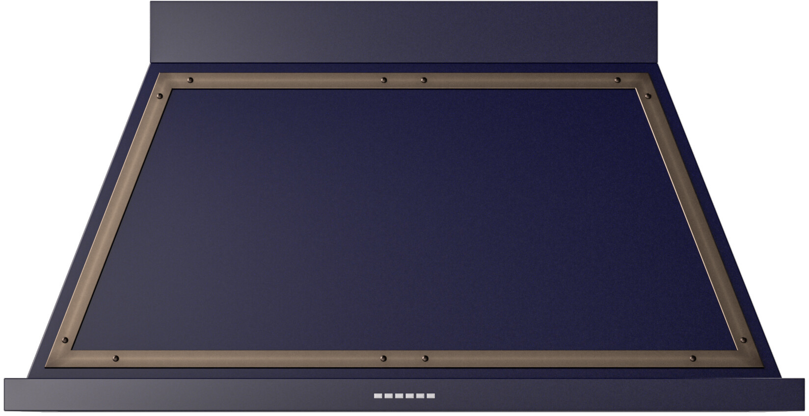 48" Wall Mount Range Hood with 3-Speeds + Intensive, 600 CFM, Front LED Bar, Anodised Aluminium Filters, and Delay Shut-Off: Midnight Blue, Bronze Trim. 3-speed including intensive mode provides 600 cfm (850 cfm on select models) to remove smoke and heat to keep your kitchen fresh. Illuminates your cooking area for enhanced visibility. Range hood filter made with high-quality anodized aluminum, is designed to capture and hold airborne grease released from cooking. Leave the kitchen after you are done cooking and let the hood continue removing unwanted smoke, turning it off by itself with the automatic delayed shutdown mode. Maintain peak performance with the automatic filter cleaning warning light, which alerts you when it's time to clean the filters, ensuring optimal airflow and efficiency. With a maximum power output of 450 Watts, this range hood delivers robust performance, efficiently extracting smoke, grease, and cooking odors from the kitchen environment. Its high-power operation ensures rapid ventilation, keeping the air clean and fresh during intense cooking sessions. The range hood features a durable construction, with a painted steel body providing strength and resilience against wear and tear. Additionally, the AISI 304 stainless steel variant offers enhanced corrosion resistance and a sleek, modern appearance, making it ideal for contemporary kitchen designs. Experience effortless cooking with the push button control feature, allowing you to easily adjust the fan speed and lighting with a simple touch. Name: Nostalgie. Type: Hood. Glass Canopy: No. Style: Canopy Pro Style. Duct Type: Round. Blower Type: Internal. Mounting Type: Wall Mount. CFM: 600 CFM. Light Bulb Type: LED. Number of Fan Speeds: 3 or More. Delay Turn Off: Yes. Filter Type: Mesh. Fan: Yes. Light: Yes. Luxury: Yes. Handcrafted from Italy: Yes. High-End Workmanship: Yes. Anodized Aluminum Grease Filters: Yes. Strip LED Lighting: Yes. Delay Shut Off: Yes. Volts: 115 Volts. Amps: 3.8 Amps. Frequency: 60 Hz. Exterior Width: 48". Width: 47 7/8". Depth: 19 3/4". Height: 26". Duct Size: 5 7/8".