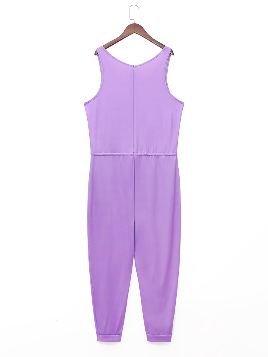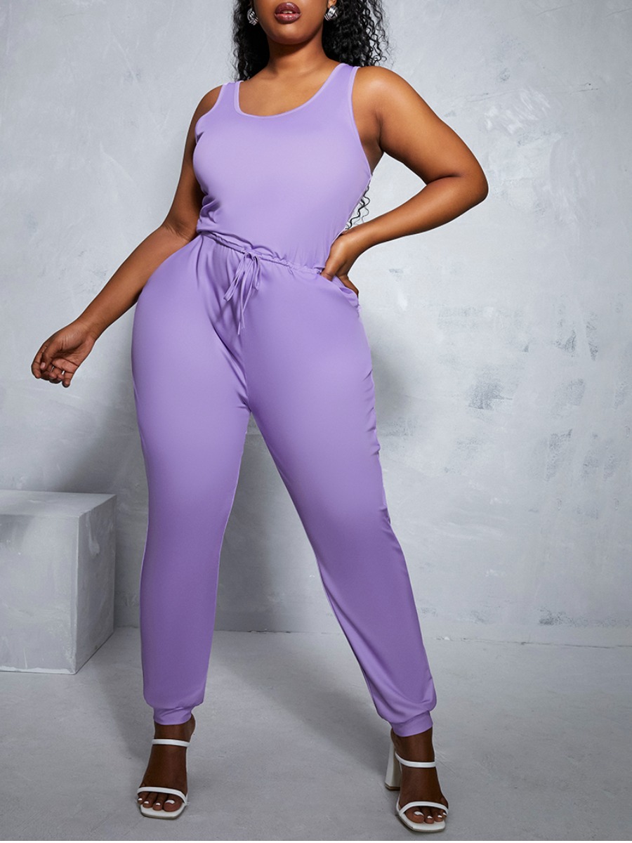 LW BASICS Plus Size U Neck Drawstring Light One-piece Jumpsuit.