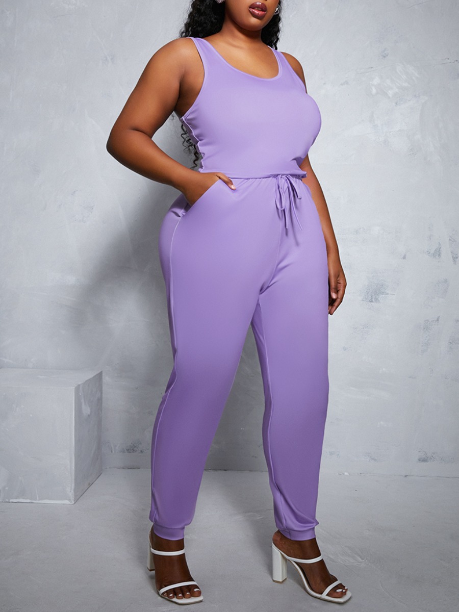 Buy LW BASICS Plus Size U Neck Drawstring Light One-piece Jumpsuit for $22.99 at @ Lovelywholesale.com