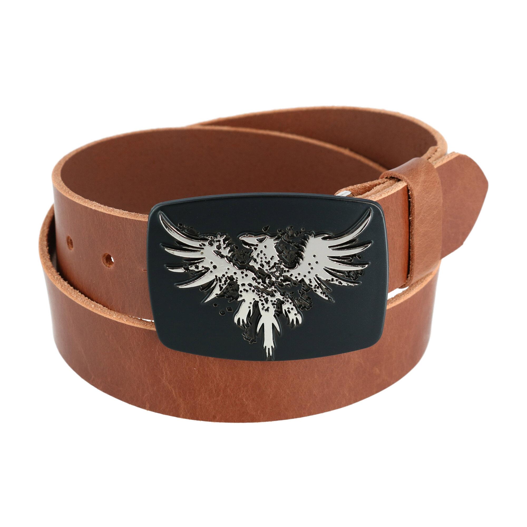 CTM Men's Leather Bridle Belt with Phoenix Belt Buckle (2 Buckle Set)
