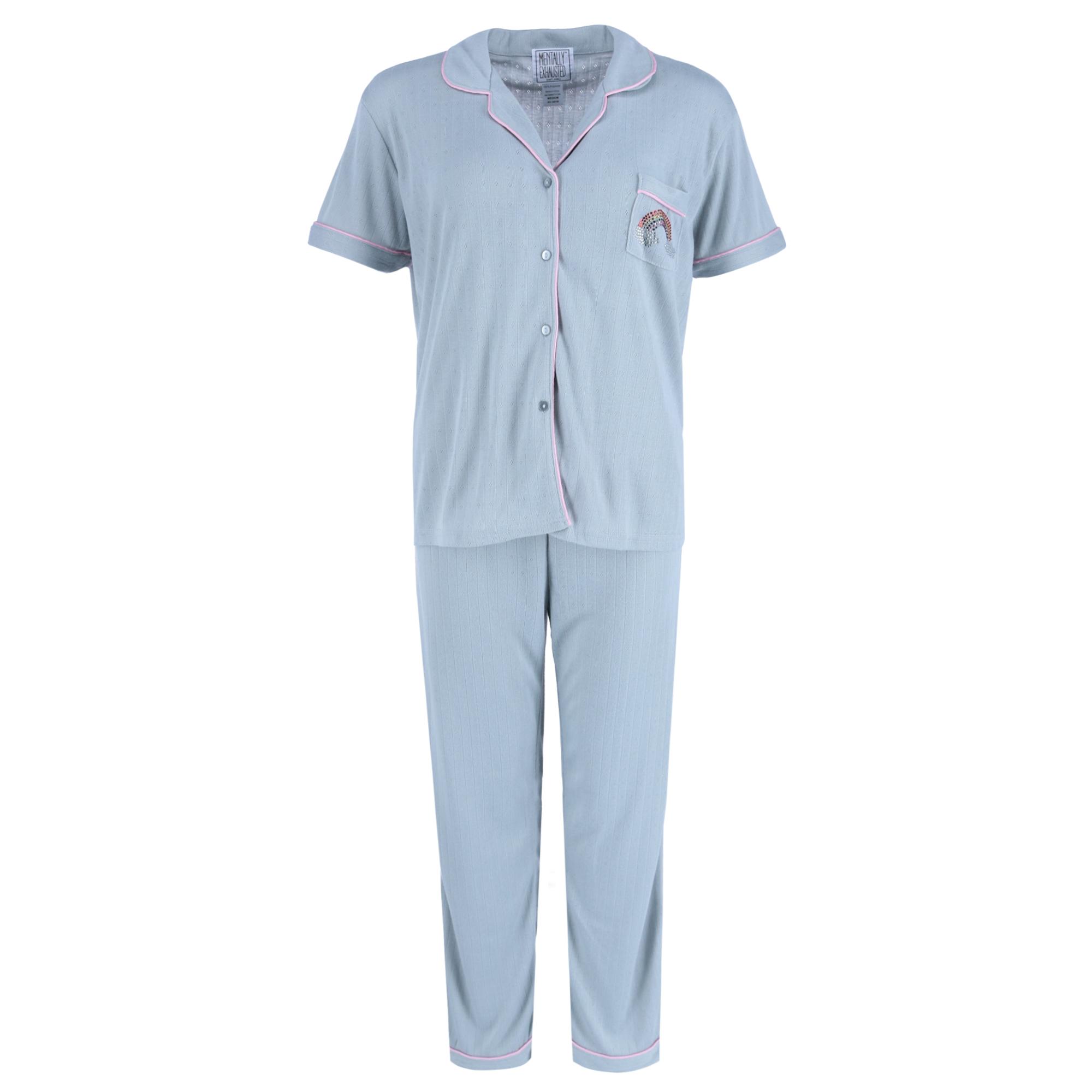 Buy Mentally Exhausted Women's Pointelle Notch Collar Pajama Set for $15.95 at @ Beltoutlet.com