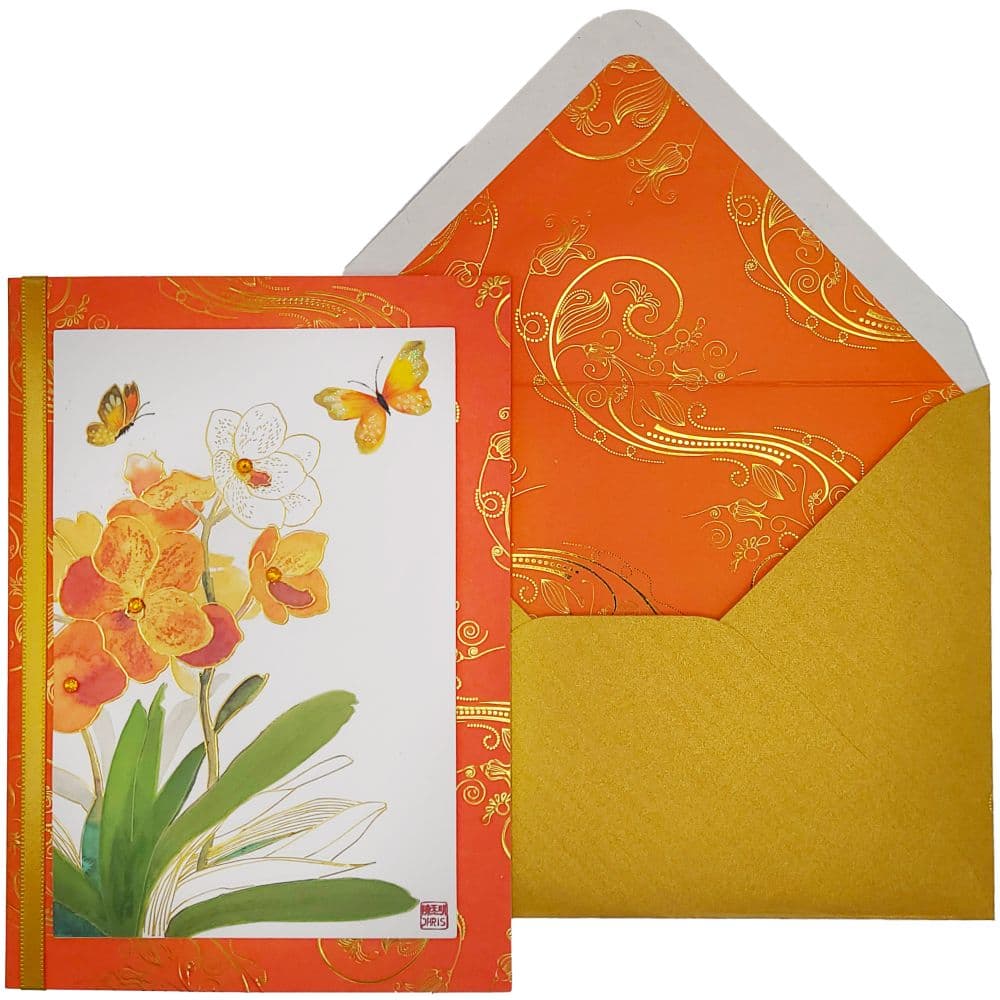Orange Orchids Birthday Card