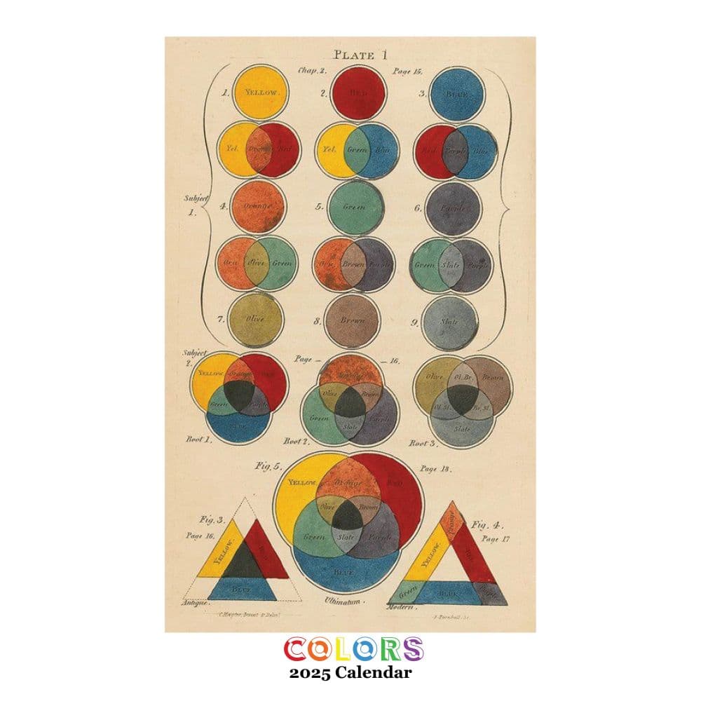 The Colors Poster 2025 Wall Calendar by Retrospect Group is a visually stunning and practical addition to any space, whether it's your home or office. This calendar not only keeps you organized but also inspires with its beautiful, vintage-style color theory plates. Each month showcases a unique, artistic representation of color interactions and theories, making it a perfect blend of functionality and artistry. Spiral binding allows the calendar to lay flat on the wall, ensuring easy reading and writing. Features a spacious grid for personal notations, starting each week on Sunday to align with standard US weekly formats. Includes major US holidays, helping you stay on top of important dates without extra clutter. Printed on FSC certified and recycled paper, supporting environmental sustainability. At the end of the year, the calendar's pages are suitable for framing, turning your organizational tool into lasting art. Crafted in the USA, this calendar is produced using environmentally friendly processes, reflecting your commitment to sustainability. The Colors Poster 2025 Wall Calendar is not just a tool for organization; it's a piece of art that brings a splash of color and historical art insight into your daily routine. Add a touch of artistic flair and impeccable organization to your year. Order the Colors Poster 2025 Wall Calendar today and transform your planning into an art form!.