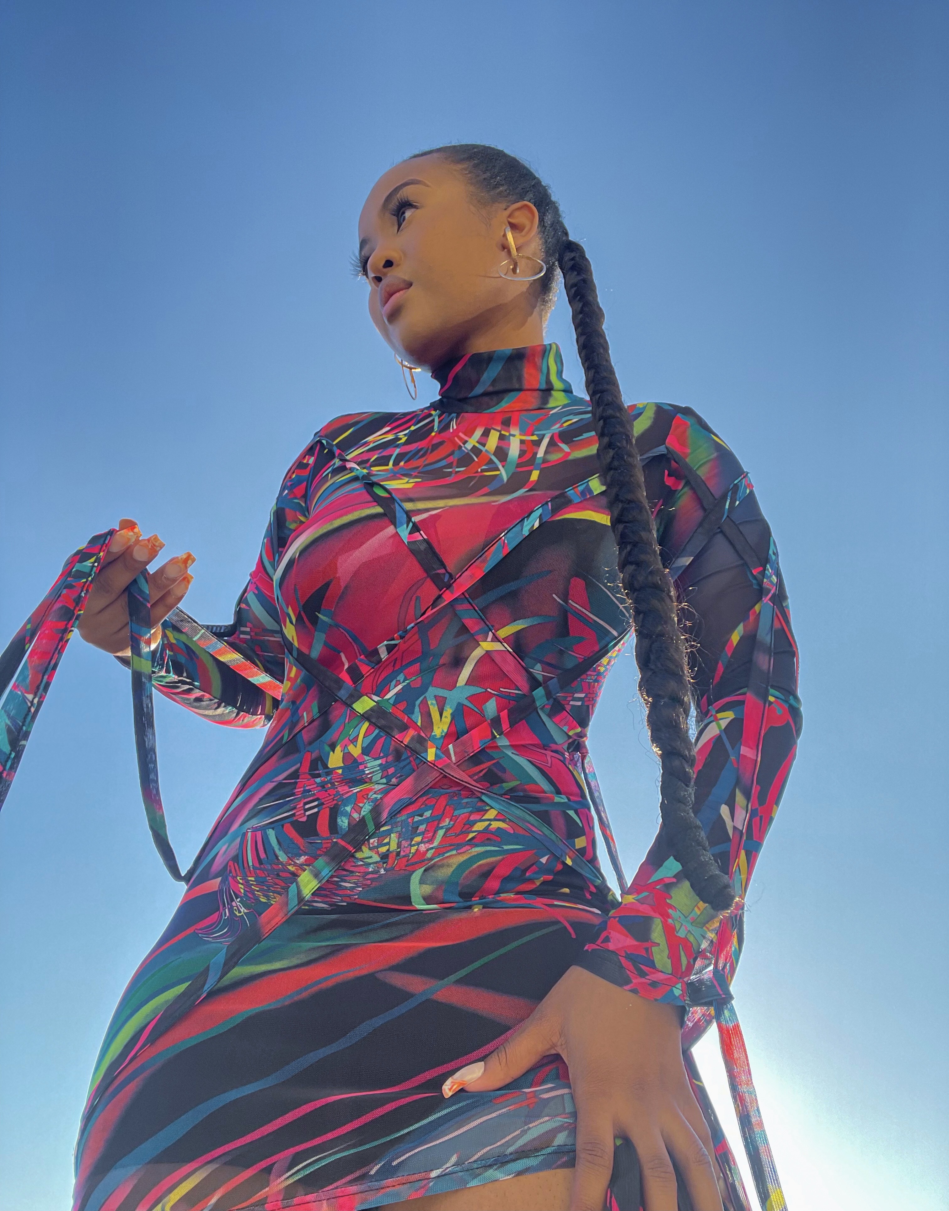 LW Street Tassel Design Mesh Print Patchwork Multicolor Mini Dress.