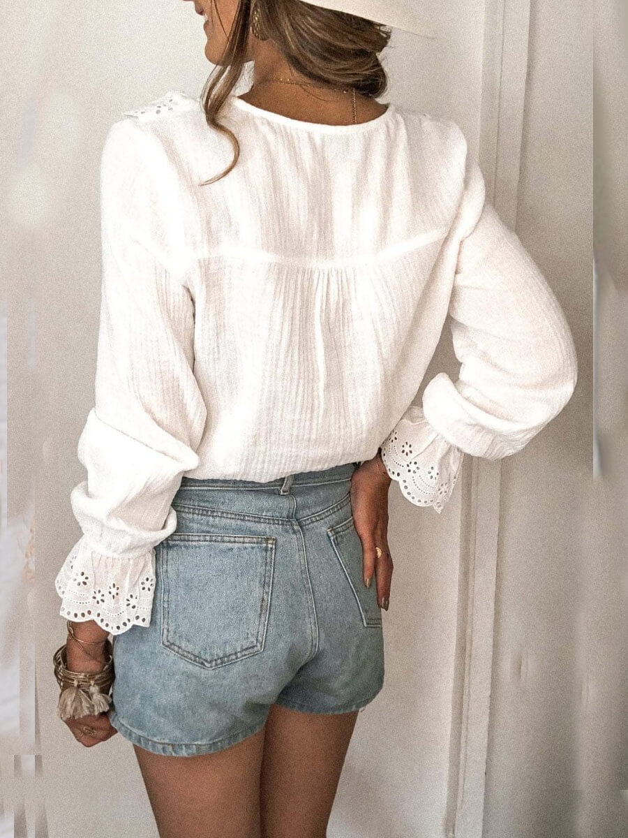 Buy LW Stylish V Neck Lace PatchworkBlouse for $17.69 at @ Lovelywholesale.com