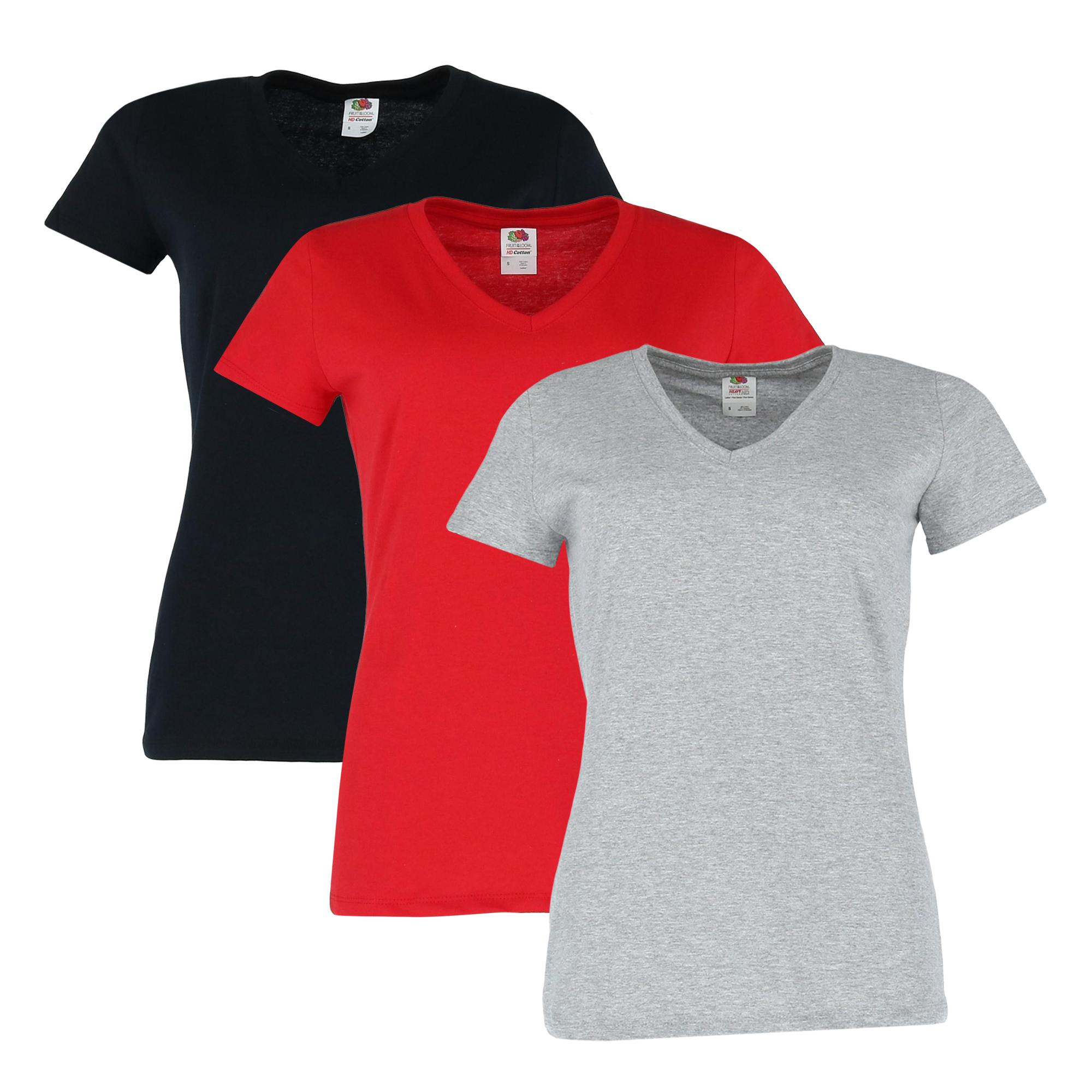 Fruit of the Loom Women's Cotton V Neck Tee Shirt (Pack of 3)