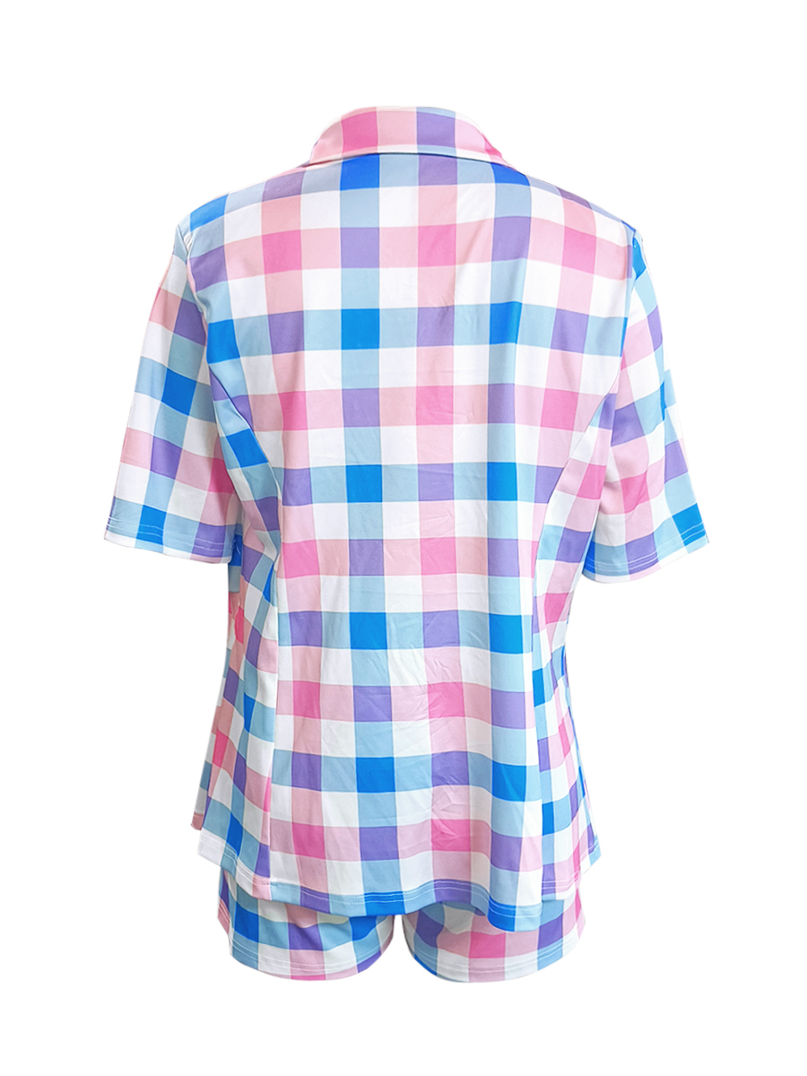 Buy LW Lapel Neck Trendy Grid Multicolor Shorts Set for $20.69 at @ Lovelywholesale.com