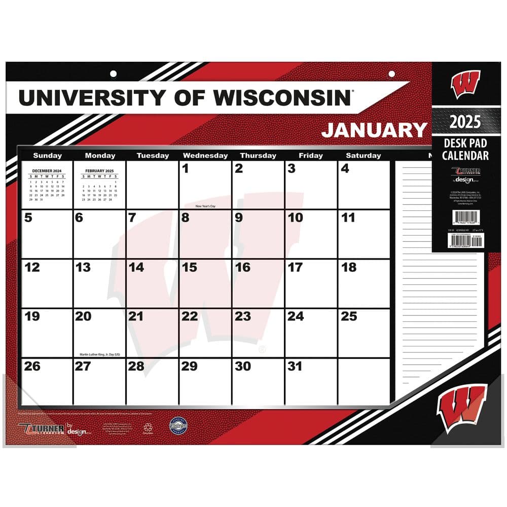 Stay organized and show your team spirit with the 2025 Wisconsin Badgers Desk Pad Calendar - Officially Licensed Collegiate Product. This officially licensed collegiate product is perfect for any fan looking to keep track of important dates while supporting their favorite team. The large 22"w x 17"h format offers ample space for notes, appointments, and upcoming events, making it an ideal addition to any desk or workspace. Officially licensed by the University of Wisconsin, featuring the iconic Badgers logo and team colors Large desk pad format (22"w x 17"h) provides plenty of room for writing and planning out your schedule Includes a full 12-month calendar for 2025, from January to December, with major U.S. holidays marked Adhesive binding allows for easy page removal without residue, keeping your workspace neat and organized Made with high-quality materials to ensure durability and ease of use throughout the year This desk pad not only helps you stay organized but also serves as a daily reminder of your school spirit. It's perfect for students, alumni, and fans who want to keep the Wisconsin Badgers close all year round. Enhance your office or home with this functional and spirited calendar. Order your 2025 Wisconsin Badgers Desk Pad Calendar - Officially Licensed Collegiate Product now and start planning your year with pride!.