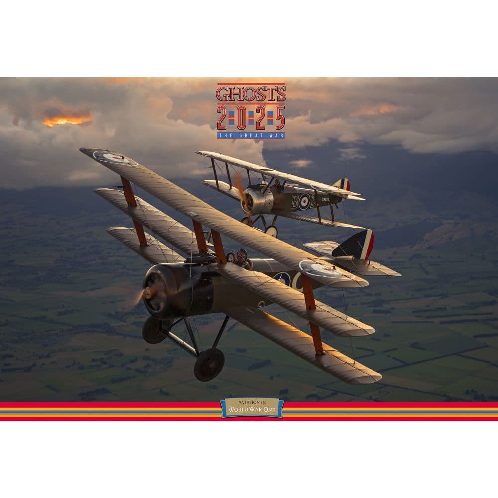 Step back in time with the Ghosts Great War 2025 Wall Calendar, featuring a breathtaking collection of 12 air-to-air color photographs by renowned aviation photographer Philip Makanna. Each month unveils a new, frame-worthy image of iconic World War I aircraft, captured in stunning detail against dramatic landscapes. This calendar not only decorates your space but also serves as an educational journey through the aerial battles and technological advancements of The Great War. Dimensions: Closed size of 20" x 14" and open size of 20" x 28", perfect for wall mounting in homes or offices. Quality: Each photograph is printed on high-quality paper, ensuring vibrant colors and clear details. Educational Content: Includes a unique chronological history of WWI aviation events and detailed specifications and silhouettes of each featured aircraft. Grid Features: Large grid size with ample space for notes and reminders, starting each week on Sunday. Binding: Durable stapled binding keeps the calendar intact throughout the year. Enhance your appreciation of historical aviation with this visually stunning and informative calendar. Each page is a gateway to the past, bringing the epic battles and heroic flights of WWI to your daily life. Ideal for history enthusiasts, aviation buffs, and collectors of military memorabilia. Add a touch of history to your home or office. Order the Ghosts Great War 2025 Wall Calendar today and keep the legacy of WWI aviation alive throughout the year!.