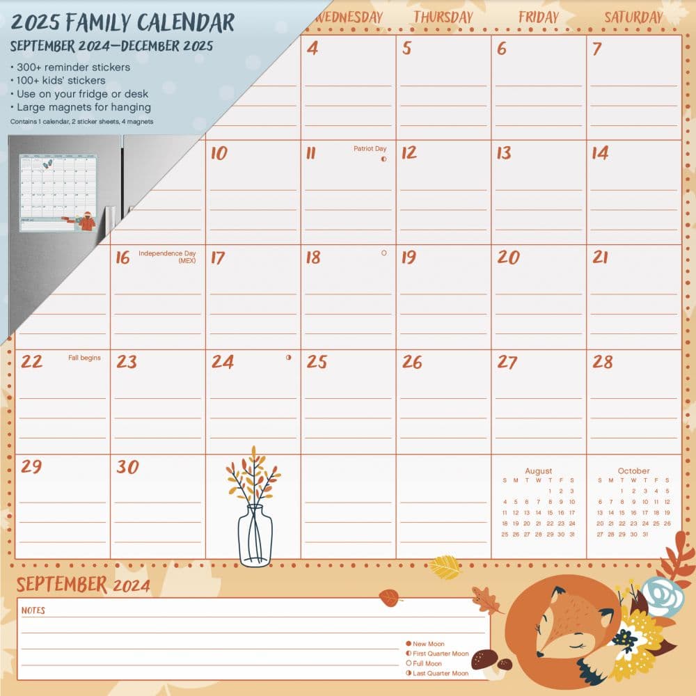 Enjoy that burst of much-needed energy every day as you utilize this brightly colored 2025 Family Calendar, designed exactly for a family like yours - always on the go. The large grids and added lines give you plenty of room to write down important notes and reminders so you can stay organized every month of the year. Magnetic Calendars include 350+ calendar reminder stickers to highlight events and four magnets with adhesive backing so you can hang them on the fridge, filing cabinet, or any magnetic surface. These DateWorks Calendars feature monthly calendar spreads for September 2024 to December 2025 that are easy to remove as you progress through the year.