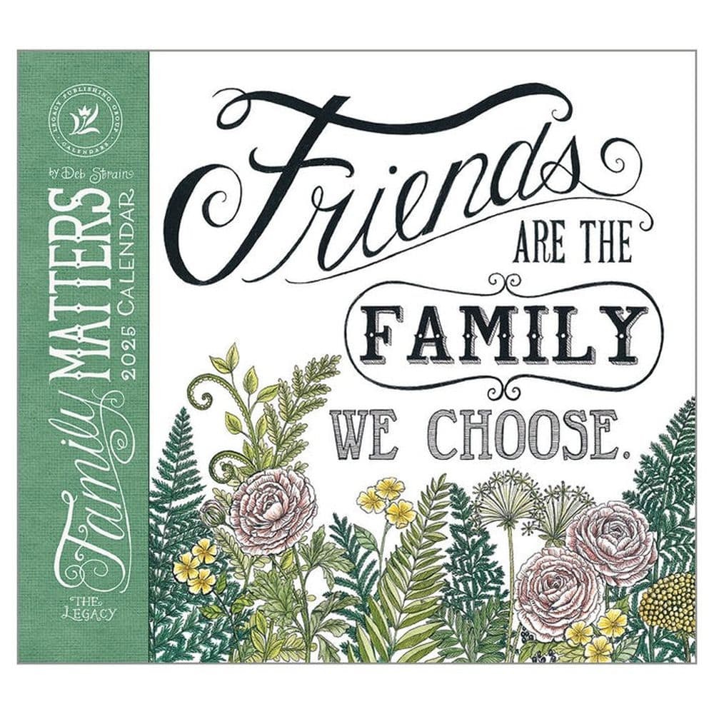 Celebrate the essence of home and family throughout the year with the Family Matters 2025 Wall Calendar by Legacy Publishing Group. Featuring the heartwarming, contemporary typographical artwork of Deb Strain, this calendar is a perfect blend of style and functionality. Each month unveils a unique, beautifully designed reminder of what makes a family special, making it more than just a calendar?it's a decoration piece filled with positivity and love. Dimensions: 13.38 x 12.13 inches, ideal for wall hanging in any family space Premium, linen-embossed paper enhances the visual appeal and provides a luxurious feel Includes a protective sleeve to ensure the calendar remains pristine all year long Custom-designed date pad with unique artwork for each month, complementing the overall theme Features a brass gusset on the front cover for enhanced durability and longevity The calendar starts in January 2025 and spans 12 months, with each page offering ample space to note down important family events and activities. It also includes a page with a mini-calendar for 2024/2025 and a section for notes, making it a practical tool for planning ahead. Whether it's for your home or as a thoughtful gift, the Family Matters 2025 Wall Calendar is sure to enrich every day of the year. Add a touch of warmth and familial love to your daily planning. Order your Family Matters 2025 Wall Calendar today and make every day a celebration of the family!.
