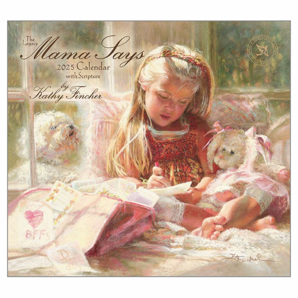 The Mama Says by Kathy Fincher 2025 Wall Calendar is a heartwarming collection of 'romantic realistic' art that captures the essence of childhood innocence through pastel paintings of angelic children. Each image is paired with uplifting Scripture quotes, making this calendar not only a visual delight but also a source of daily inspiration. Printed on premium, linen-embossed paper, this calendar offers a luxurious feel and comes in a protective sleeve, ensuring its beauty lasts throughout the year. Calendar size when closed is 13.38 x 12.13 inches, perfect for wall hanging in any room. Features a unique date pad designed to complement each month's artwork. Includes a brass gusset on the front cover for enhanced durability. Provides a 2-year overview (2024/2025) and a dedicated space for notes on the last page. Stapled binding ensures pages stay securely in place. Enhance your daily routine with the serene and beautiful scenes depicted in the Mama Says by Kathy Fincher 2025 Wall Calendar. Each month offers a new opportunity to reflect on the simplicity and purity of childhood, accompanied by thoughtful biblical verses. Ideal for families, educators, or anyone seeking a gentle reminder of life's simple joys and spiritual truths. Add this exquisite calendar to your collection today and keep track of important dates while enriching your spiritual journey throughout the year!.