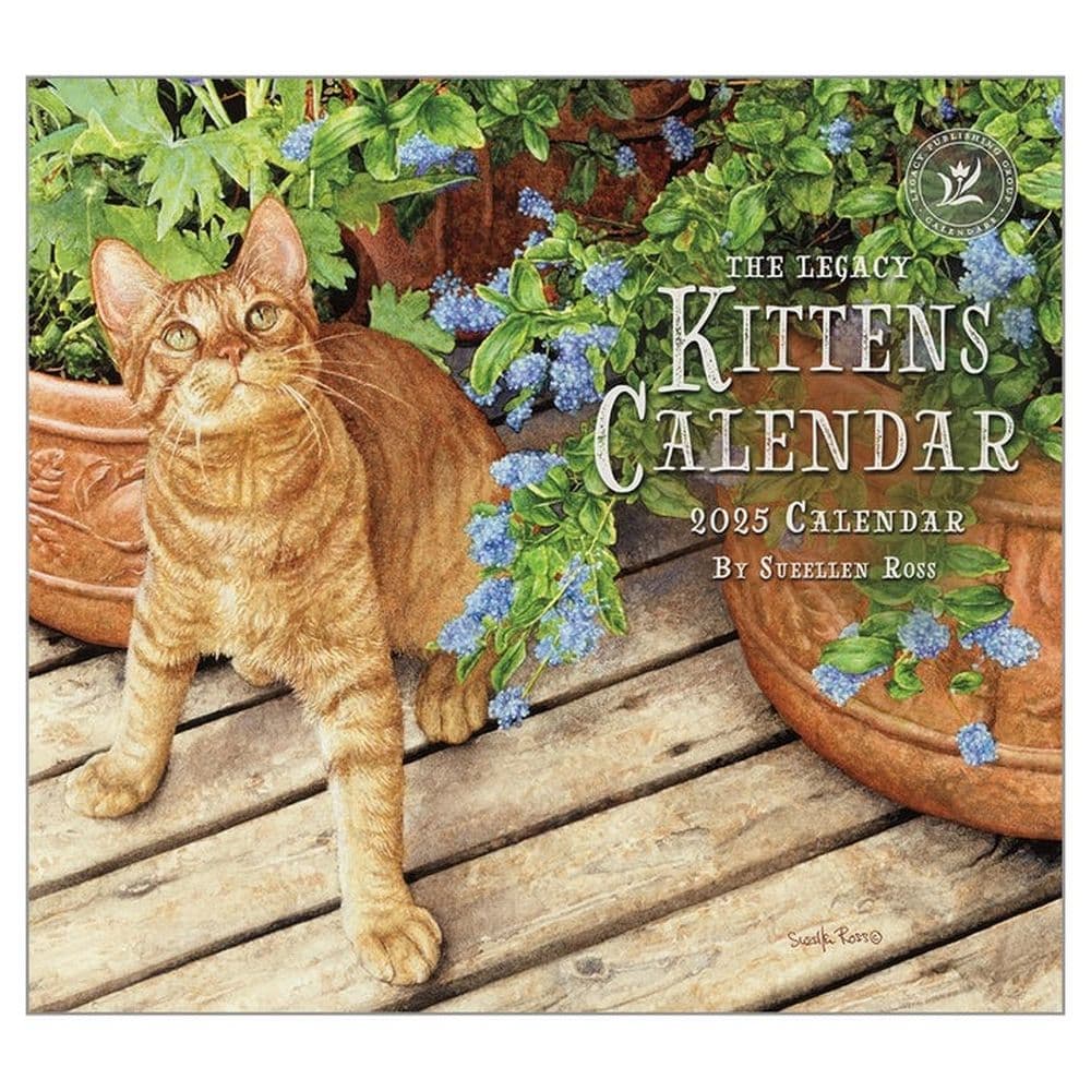 Adorn your wall with the Charming Kittens 2025 Wall Calendar by Legacy Publishing Group, featuring the exquisite artwork of Sueellen Ross. Each month unveils a beautifully rendered image of adorable kittens, making it a perfect collectible for cat lovers and art enthusiasts alike. Printed on premium, linen-embossed paper, this calendar offers a luxurious feel and durability throughout the year. Dimensions: 13.38 x 12.13 inches, ideal for moderate wall spaces Linen-embossed paper enhances the quality and feel Includes a protective sleeve to maintain its pristine condition Unique date pad design complements each kitten illustration Brass gusset on front cover ensures enhanced durability The calendar spans from January to December 2025 and includes a page with a mini-calendar for 2024/2025 and space for notes, making it both practical and charming. The grid layout starts each week on Sunday, providing a familiar format for easy viewing and planning. Embrace the joy of kitten artistry all year round and keep your days organized with this delightful wall calendar. Perfect for gifting to cat enthusiasts or adding a touch of whimsy to your own home or office. Order now and enjoy a year filled with feline charm!.