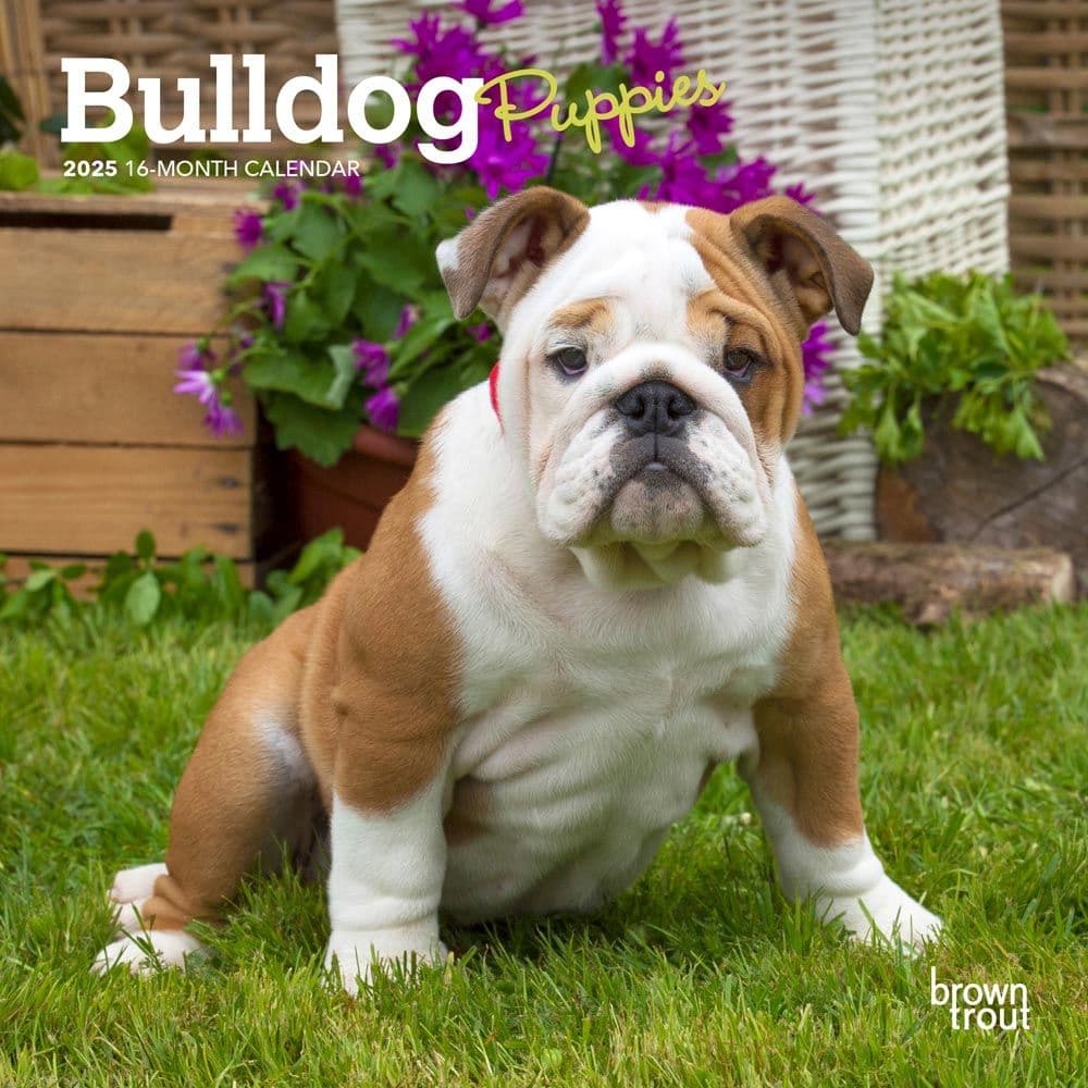 Cherish the charm and whimsy of Bulldog Puppies all year round with the 2025 Bulldog Puppies Mini Wall Calendar. This delightful mini wall calendar showcases a different adorable bulldog puppy each month, capturing their playful spirits and lovable personalities in stunning, high-quality photographs. Perfect for small spaces, this 7" x 7" calendar expands to 7" x 14" when open, providing a compact yet functional way to plan your days and celebrate your love for these cuddly companions. Compact 7" x 7" size that opens to 7" x 14", ideal for limited space environments like offices or apartments. Features a collection of high-quality, heartwarming images of Bulldog puppies, perfect for any dog lover. Includes a bonus four-month overview of September to December of the previous year, helping you organize early. Monthly grids provide ample space for noting appointments and reminders, starting each week on Sunday. Lists all major U.S. and international holidays, ensuring you never miss an important date. Each page of this mini wall calendar is made from recyclable materials, affirming BrownTrout's commitment to sustainability. The stapled binding ensures durability throughout the year, making it a reliable and charming addition to any room. Whether for personal use or as a thoughtful gift, the Bulldog Puppies 2025 Mini Wall Calendar is sure to bring joy and organization to anyone's year. Add a touch of sweetness to your daily planning. Order your Bulldog Puppies 2025 Mini Wall Calendar today and enjoy the delightful presence of these adorable puppies every day!.
