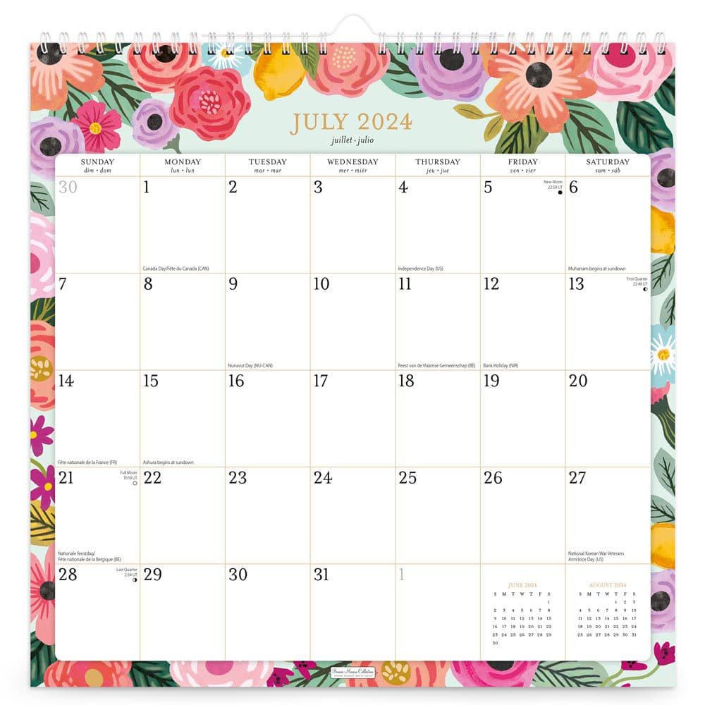 Stay organized and inspired throughout the year with the Bonnie Marcus Plato 2025 Floral Wall Calendar, featuring the chic and vibrant designs of Bonnie Marcus. This calendar is perfect for anyone who appreciates fashion-forward stationery and wants to add a touch of style to their daily planning. With its bright floral patterns and functional design, it's an ideal choice for home or office use. Dimensions: 12" x 12" closed, 12" x 24" open, providing ample space for daily notes and activities. Wire-O binding allows the calendar to lay flat on the wall, ensuring easy reading and writing. Includes a full academic year with each month clearly marked, making it perfect for teachers, students, and professionals. Features large grid spaces for appointments and reminders, starting each week on Sunday for a traditional setup. Lists major U.S. and international holidays, helping you stay on top of important dates. Each month displays a unique, beautifully designed floral theme that brings a fresh and lively vibe to your space. The calendar also includes a sheet of stickers to mark special events and activities, enhancing your organizational capabilities. Don't miss out on this exquisite blend of functionality and style. Order your Bonnie Marcus Plato 2025 Floral Wall Calendar today and make each day a little brighter!.