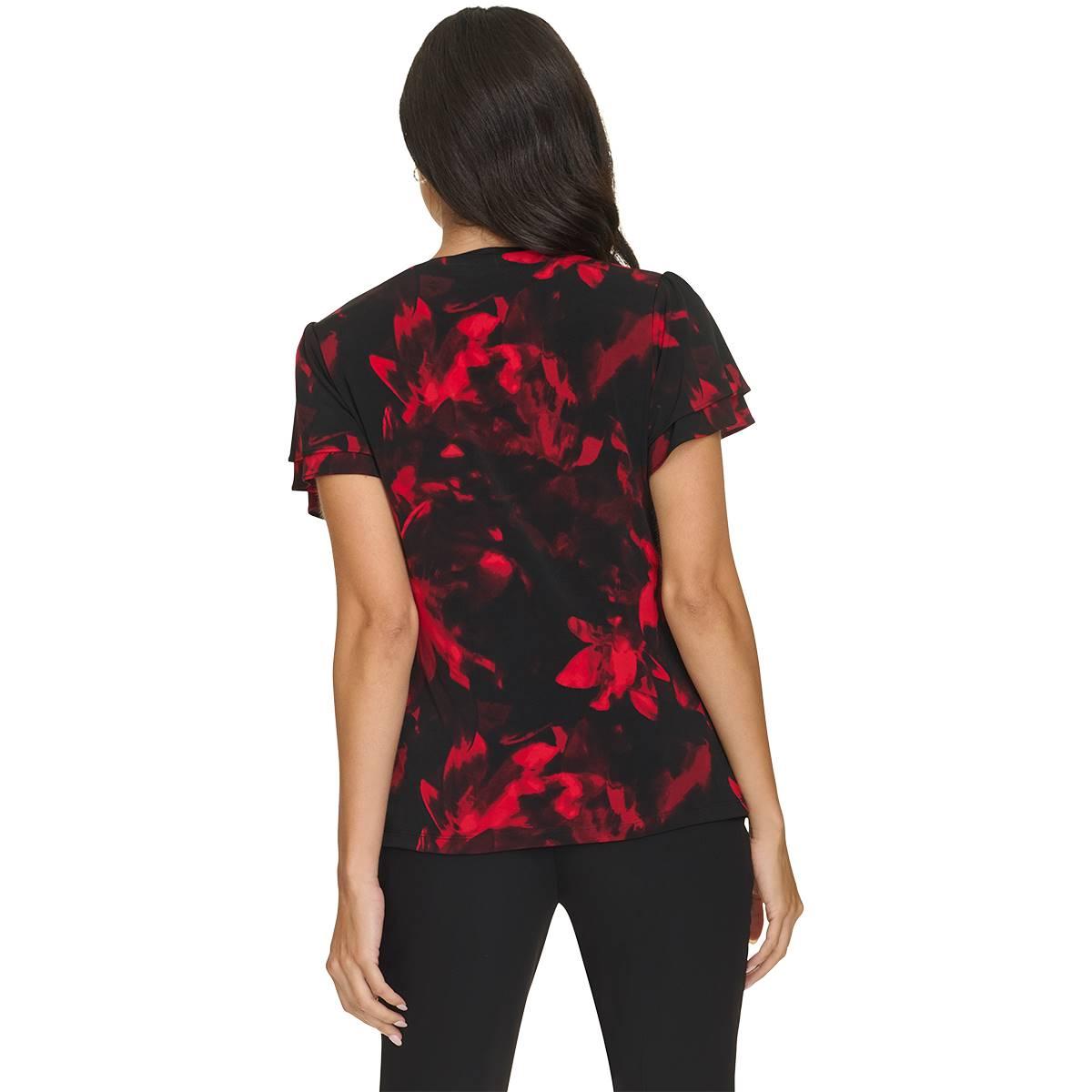 Petites Calvin Klein Short Flutter Sleeve Watercolor Blouse