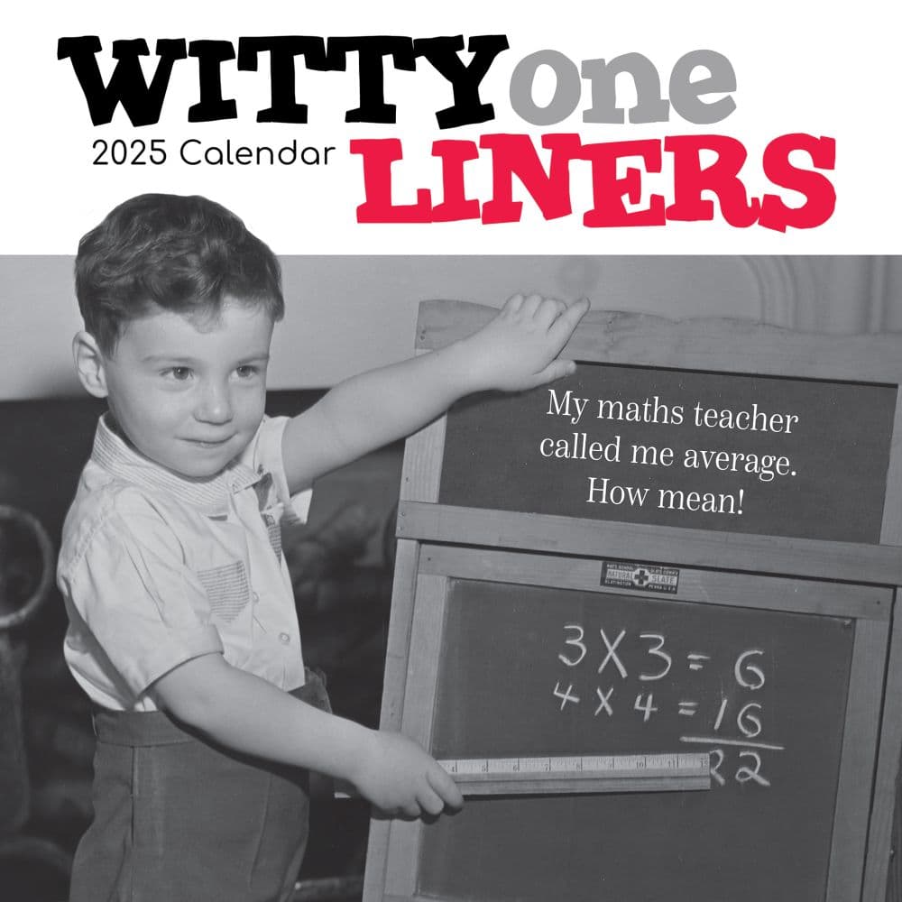 Brighten your days with the Witty One Liners 2025 Wall Calendar, a delightful collection of humorous quips and clever observations that promise to bring laughter into your home or office. Each month unveils a new, witty one-liner that not only serves as a mood lifter but also as a charming conversation starter. From puns that tickle the funny bone to smart remarks that provoke thought, this calendar is your daily dose of humor wrapped in a stylish, vintage-inspired design. Calendar dimensions when closed are 11.8 x 11.8 inches, and 11.8 x 33.6 inches when open, providing ample space for daily notes and reminders. Features a traditional stapled binding for a clean, secure look. Includes a 16-month span from September 2024 to December 2025, making it perfect for early planning and scheduling. Each month displays large grid spaces, starting on Sunday, ideal for jotting down appointments and reminders. 100% plastic-free packaging, aligning with eco-friendly practices and reducing environmental impact. The Witty One Liners 2025 Wall Calendar is not just a tool for organization; it's a source of joy and a perfect gift for anyone who appreciates a good laugh. Its classic, monochrome aesthetic with a pop of red enhances any wall space, making it a functional piece of art. Ideal for both personal use and as a thoughtful gift, this calendar keeps you organized and entertained throughout the year. Add a touch of humor to your daily routine or give the gift of laughter by ordering the Witty One Liners 2025 Wall Calendar today!.