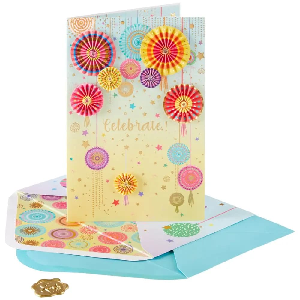 Step into the enchanting world of NIQUEA.D with the Birthday Fans Collector's Edition Birthday Card?a captivating blend of tradition and celebration, designed to make every birthday feel like an exquisite event. Artistic Brilliance: The card's highlight is the alluring array of handcrafted fans, each bearing intricate designs and radiant hues. The fans, an emblem of elegance and festivity, come together to create a whirlwind of birthday wishes. Intimate Interior: Delve inside to find a sanctuary of sentiments. The artistry continues with detailed motifs accompanying a space perfect for your personalized birthday greetings, making every word resonate with warmth and affection. Protective Outer Envelope: Every wish, every sentiment, and every design detail is invaluable. To ensure that this card reaches its recipient in impeccable condition, it is paired with a protective outer envelope, acting as a guardian to the treasure within. The NIQUEA.D Birthday Fans Collector's Edition Birthday Card transcends the usual birthday greetings. It's an embodiment of elegance, love, and timeless charm, making every birthday moment even more memorable.Occasion: BirthdayMeasures: 8.375" x 5.375"Embellishment: Layered Tip-ons, FoilSentiment: Hope you have a day full of excitement, happiness and dreams come true! Happy Birthday.