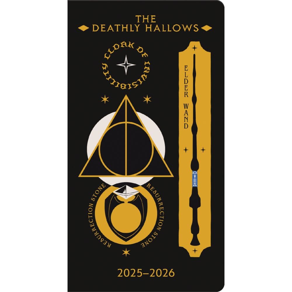 Step into the magical world of Harry Potter with the 2025-2026 Harry Potter Pocket Planner, featuring the iconic Deathly Hallows design. This compact and eco-friendly planner is your perfect companion for planning your daily adventures, whether you're heading to Hogwarts or managing your Muggle responsibilities. With its enchanting design and practical features, it's ideal for students, professionals, and any fan of the wizarding world. Compact size (3.63 x 6.69 inches closed, 7.26 x 3.63 inches open) fits easily in pockets, purses, or backpacks Eco-friendly with a durable cardstock cover, replacing the previous plastic sleeve, and printed on recyclable paper Includes monthly calendar spreads from January 2025 through December 2026, plus bonus spreads for the last six months of 2024 Features extra notes pages for jotting down spells, potions, or muggle meeting notes Lists major U.S. holidays and observances, keeping you up to date with important dates This planner not only helps you stay organized but also brings a bit of magic to your everyday life. The detailed Deathly Hallows cover art invites you to explore the deeper mysteries of the wizarding world while keeping track of your daily tasks. Whether you're a busy professional or a bustling student, this planner is designed to ensure you never miss a beat. Secure your magical companion for the next two years! Perfect for personal use or as a gift for any Harry Potter enthusiast. Order now and let the Harry Potter 2025-2026 Pocket Planner cast a spell of organization over your life!.