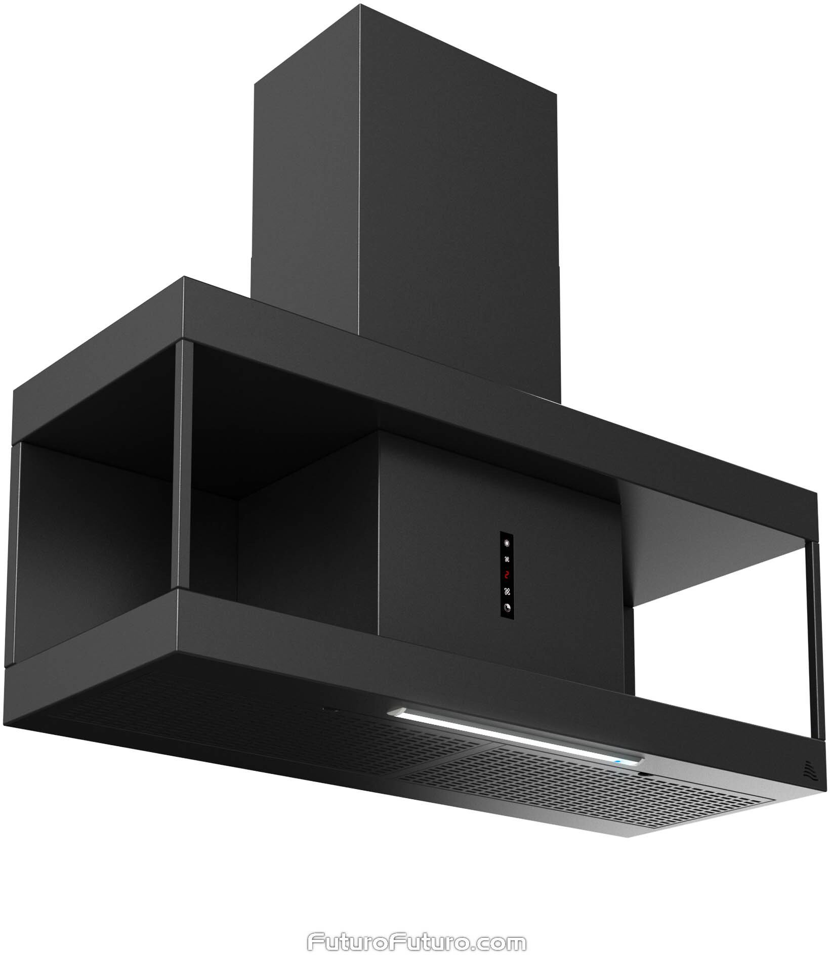 36" Wall Mount Range Hood with 4-Speeds, 940 CFM Blower, Touch-Sensitive Optical Control, LED Strip Lighting, and Dishwasher-Safe Metal Mesh Filters. Offers versatile ventilation options to suit different cooking needs. Equipped with a powerful 940 CFM blower, the Nova Black Wall Range Hood efficiently eliminates smoke, steam, and odors, creating a fresh and clean cooking environment. Allows easy and precise control with a simple touch. Brightens your cooking area with energy-efficient illumination. The dishwasher-safe filters simplify maintenance, ensuring the range hood's optimal performance over time. Ensures durability and a lasting shine. A unique feature of this range hood is the integrated shelf/storage, which provides a convenient space for planters or other accessories, adding a personalized touch to your kitchen decor. Operates quietly to maintain a peaceful kitchen environment. Maintains a low noise level for a comfortable cooking experience. Offers installation flexibility, accommodating both ducted and ductless setups to suit your kitchen layout. Mounting Type: Wall Mount. Color / Finish: Black gunmetal. Design: Contemporary, Modern. Materials: Painted steel. Lighting Type: LED. # of Lights: 1x LED light strip. # of Speeds: 4. Control Panel Type: Futuristic touch-sensitive optical control panel. Filter Type: Dishwasher-safe, metal mesh filters. Blower Type: Internal Whisper-Quiet tangential (INCLUDED). Noise Level: 0.5 - 3.2 sones. Duct Size: 6" (rigid, round, or equivalent). Airflow: 150-940 CFM. CFM can be reduced upon customer request, to accommodate local building code requirements. Power Requirements: US Standard 3-pin plug, 110-120 Volts, 60 Hz, 3 Amp. Certifications: UL, CSA Listed for USA and Canada. Warranty: 1-year US standard + 2-year parts. Country of Production: Made in Italy. Overall Width: 36". Width: 35 1/4". Depth: 13 1/8". Height: 23 3/8" - 35 3/4". Height Above Cooktop: 28" - 30" for best performance.