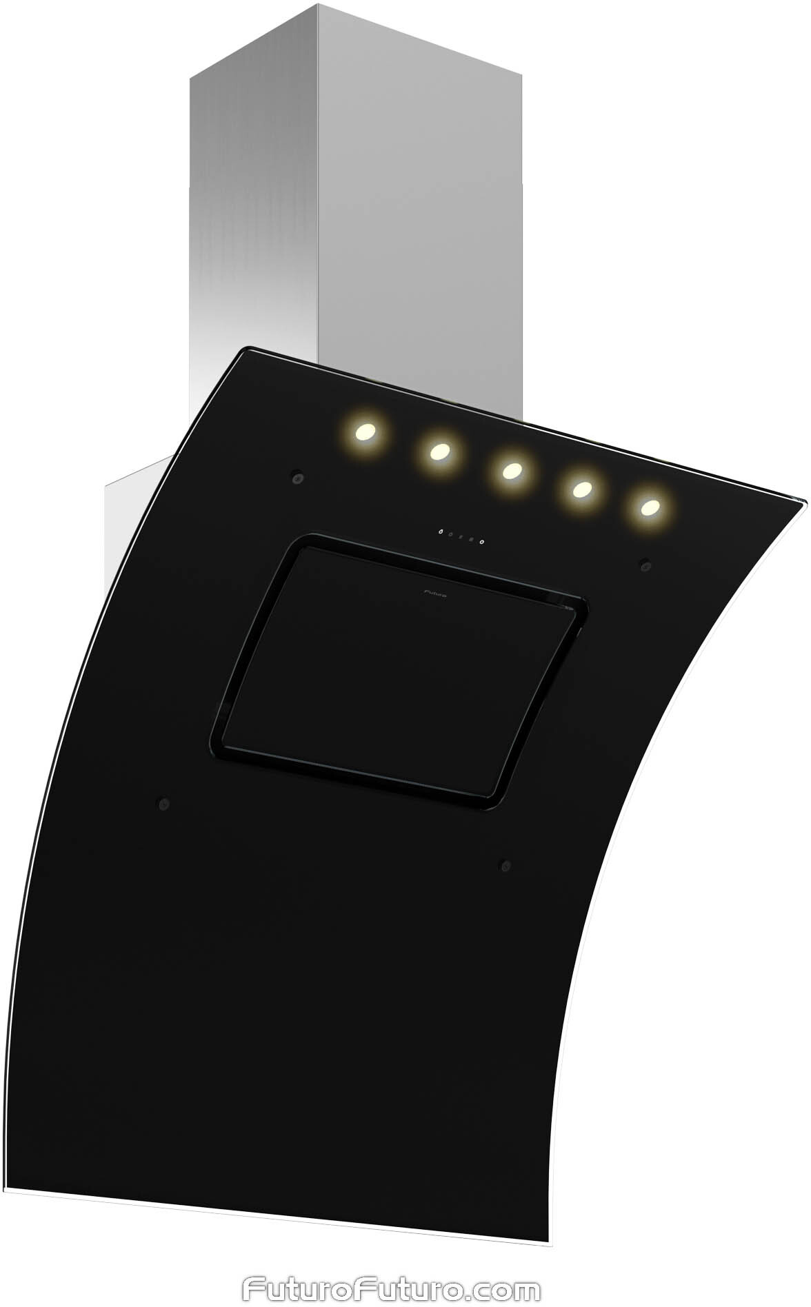 Splash Wall Mount Range Hood with 4-Speeds, 940 CFM Blower, Touch Control, 5 Dynamic LED Lighting, and Perimeter Suction System: Black, Glass. Select from four fan speeds for custom ventilation control. Equipped with a high-efficiency 940 CFM blower, this range hood excels in removing smoke, steam, and odors from your kitchen, ensuring a fresh and clean cooking environment. Provides easy and intuitive operation, giving you full control over the ventilation settings. Offers excellent illumination for your cooking surface, enhancing visibility while adding a modern touch to your kitchen. With dishwasher-safe concealed filters. The perimeter extraction system further enhances performance by guiding cooking fumes along the edges of the hood, increasing efficiency while reducing noise emissions. Allows you to program the hood's shutdown, optimizing air purity in your kitchen and promoting a healthy atmosphere. The glass panel of the hood serves a dual purpose, acting as both a stylish accent and a protective barrier for your kitchen walls. Cleaning becomes hassle-free as the glass surface ensures easy maintenance and offers an additional layer of convenience. The built-in light indicators for grease filter maintenance and charcoal filter substitution ensure you never miss a crucial maintenance step. Silent motor design for peaceful operation. Operates quietly, even at high speeds. Flexible installation for various kitchen setups. Experience a consistently fresh kitchen environment. This innovative feature is designed to keep your kitchen air clean and fresh even when you're not actively cooking. By operating on a gentle 5-minute on, 25-minute off cycle, the range hood quietly and efficiently eliminates lingering odors, stale air, and pollutants. Can be easily activated or deactivated to suit your needs and will automatically turn off after 24 hours, ensuring a perpetually fresh kitchen atmosphere. Mounting Type: Wall Mount. Color / Finish: Black, Glass. Design: Contemporary, Modern. Materials: Stainless Steel, Glass. Lighting Type: LED (3000K). # of Lights: 5. # of Speeds: 4. Control Panel Type: Futuristic touch-sensitive optical control panel. Filter Type: Perimeter Suction System with dishwasher-safe concealed filters. Blower Type: Internal Whisper-Quiet tangential (INCLUDED). Noise Level: 0.5 - 3.2 sones. Duct Size: 6" (rigid, round, or equivalent). Exhaust Type: Ducted or Ductless. Airflow: 150-940 CFM. CFM can be reduced upon customer request, to accommodate local building code requirements. Power Requirements: US Standard 3-pin plug, 110-120 Volts, 60 Hz, 3 Amp. Certifications: UL, CSA Listed for USA and Canada. Warranty: 1-year US standard + 2-year parts. Country of Production: Made in Italy. Width: 36". Depth: 20". Height: 35 1/2" - 70 7/8" (adjustable). Height Above Cooktop: 0" - 6".