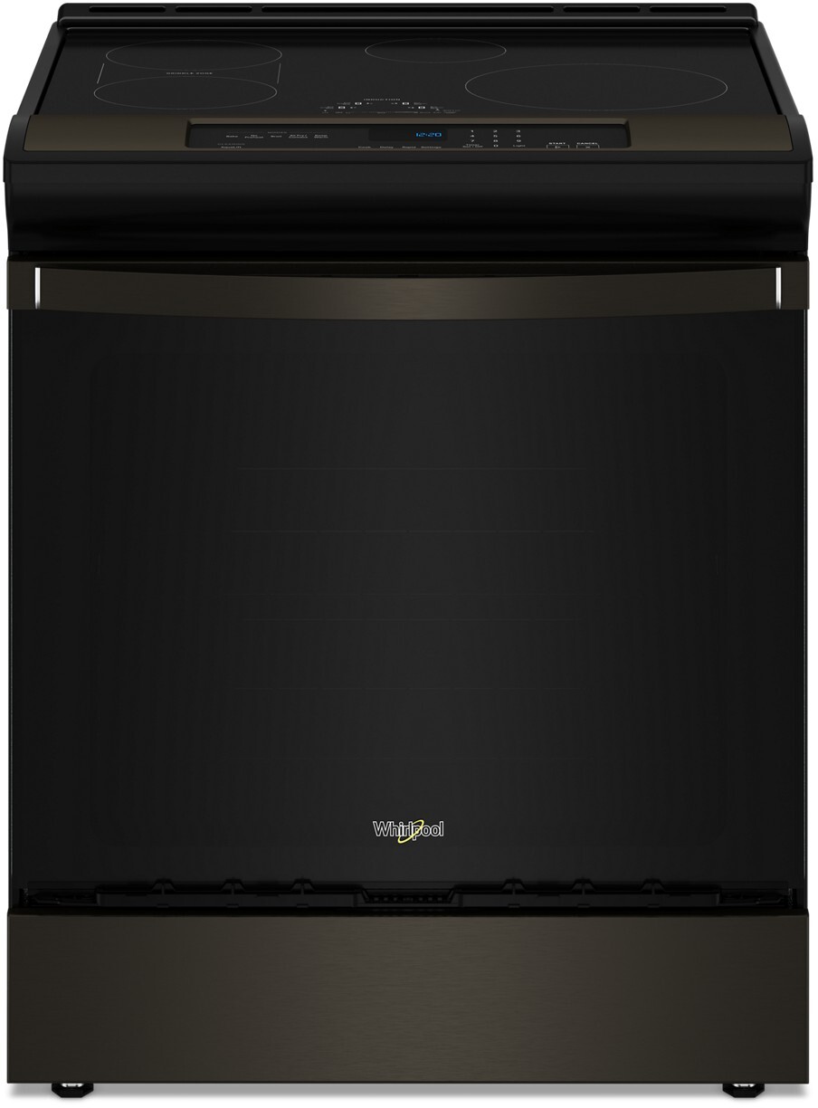 Slide-In Induction Range with 4 Cooking Elements, 6.4 cu. ft. Convection Oven, No Preheat Mode, Griddle Zone, Keep Warm Setting, Air Fry, AquaLift Self-Cleaning Technology, ADA Compliant, and ENERGY STAR Certified: Black. Induction Technology makes cooking and cleaning fast by transferring heat to the pot, not the cooking surface. This makes cooking and cleaning spills simple. Start air frying without the wait with No Preheat Air Fry. Griddle Zone delivers new cooking capabilities by connecting two individual heating elements to form one larger one, making it easy to cook different foods at once. ENERGY STAR Certified models exceed government standards to help save money on your utility bills. Go beyond Air Fry with All In One Air Cooking Technology including Air Baking, Air Roast, and Air Broil for fast, delicious cooking. Heat food fast with Air Baking. The oven fan circulates hot air from three heating elements around the oven so you can cook foods fast and don't have to move dishes around as you cook. Rapid Preheat helps you save time with a fast preheating mode. A rear fan combined with the use of all of the elements helps heat the oven quickly. Compatible with cookware that is multi-ply stainless steel, enameled steel or cast iron. Use pans marked "Works with Induction" or test to see if a magnet will stick to the bottom. Easily cook a whole meal with 6.4 Cu. Ft. capacity. Take preheating off your plate with No Preheat Mode. Simply place your food in the oven and start baking. The oven will adjust the cook time for frozen pizzas and more. Clean your oven without harsh chemicals in only 40 minutes with AquaLift Self-Cleaning Technology. Add water, run the cycle and then wipe away any remaining soils once the cycle is done.*Unlike the traditional Adjustable Self-Clean Cycle which burns off. Available in a stainless finish that's easy to clean and resists fingerprints and smudges. Use the Keep Warm setting in the oven to help your dishes stay warm until your family is ready to dig in. Disable the control panel to avoid unintended use and easily clean controls. This range meets the Standards for Accessible Design specified by the Americans with Disabilities Act to provide equal access to all. Size: 30". Fuel Type: Electric. Range Type: Slide-in. Capacity: 6.4 cu. ft. Number of Cooking Element-Burners: 4. Door Removable: Yes. Oven Window Size: Large. Handle Type: Reach-Through Handle. Oven Cooking System: Thermal. Display Color: Blue. Electronic Display Type: LED. Power Outage Compatible: No. Heating Element On Indicator Light: Yes. Hot Surface Indicator Light: Yes. Power Cord Included: Yes. Interior Color: Grey. Oven Control Location: Front. Oven Control Type: Electronic Touch. Bake Element Power: 3,600W. Broiler Location: Top of Oven. Oven Light Type: Incandescent. Oven Light Switch Location: Oven Control. Number of Oven Racks: 2. Oven Rack Type: Standard. Oven Cleaning Type: AquaLift Self Clean. Number of Oven Lights: 1. Number of Rack Guides: 7. Hidden Bake Element: Yes. Cooktop Element Style: Induction. Left Front Element-Burner Power: 3,000W. Left Front Element-Burner Size: 7in. Left Front Element-Burner Type: Induction Bridge. Left Rear Element-Burner Power: 3000W/1400W. Left Rear Element-Burner Size: 7in. Left Rear Element-Burner Type: Induction Bridge. Number of Cooking Element-Burners: 4. Right Front Element-Burner Power: 3700W. Right Front Element-Burner Size: 10in. Right Rear Element-Burner Size: 5 1/2 in. Right Front Element-Burner Type: Power. Right Rear Element-Burner Power: 2200W. Cutout Depth: 24 in. Cutout Height: 36 in. Cutout Width: 30 in. Depth Closed Excluding Handles: 27-7/8 in. Depth Closed Including Handles: 28-7/8 in. Depth With Door Open 90 Degree: 48-1/2 in. Gross Weight: 229 lbs. Height: 36 in. Net Weight: 211 lbs. Oven Interior Height: 22-1/8 in. Oven Interior Depth: 20-5/8 in. Oven Interior Width: 24-1/8 in. ADA Compliant: Yes. UL: Yes.