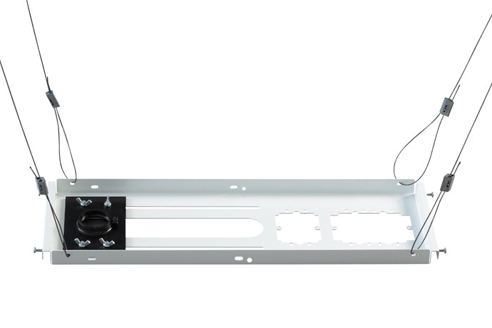 WireVice Cable Suspension System for quick, easy tie-offFlexible solution provides infinite 1-1/2" NPT column placement within a 2' x 2' or 2' x 4' ceiling tileSingle and dual electrical outlet cutoutsAll-Points Security System provides exclusive locking hardware at the column connection point to protect against theftIncludes (4) 25' (762 cm) flexible cables, (4) wood eyebolts, (4) concrete anchors and a chrome trim ringCertification: TUV Certified, UL Listed. Epson SpeedConnect Above Tile Suspended Ceiling Kit (ELPMBP04).