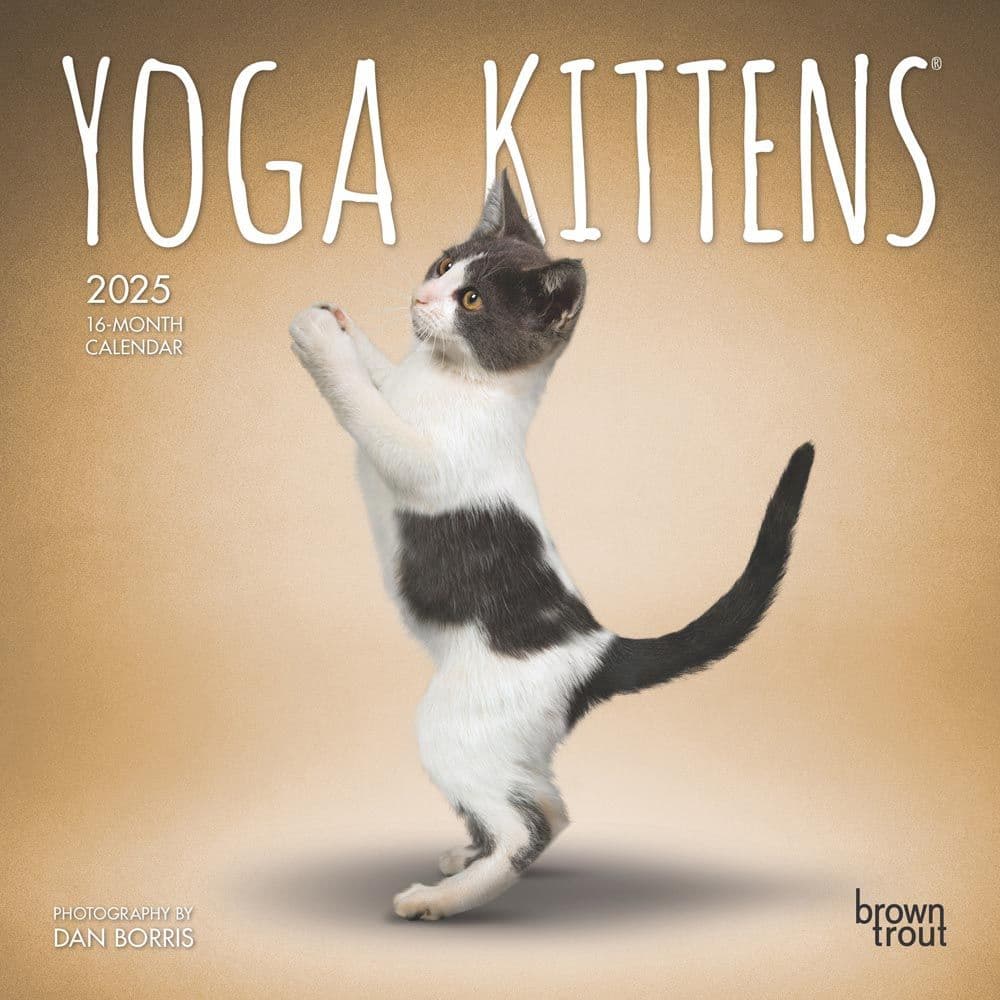 The Yoga Kittens 2025 Mini Wall Calendar brings a delightful blend of serenity and whimsy to your daily planning. Captured by the talented photographer Dan Borris, these charming kittens strike playful yoga poses that are sure to brighten your day. This calendar is perfect for cat lovers and yoga enthusiasts alike, offering a unique twist on staying organized and inspired throughout the year. Compact 7" x 7" size when closed, expanding to 7" x 14" when open, ideal for small spaces. Features high-quality, full-color photographs of kittens in various yoga poses. Monthly grids start on Sunday, providing ample space for jotting down appointments and reminders. Includes major U.S. and international holidays, ensuring you never miss an important date. Eco-friendly, with all components recyclable, supporting your green lifestyle choices. Each month unveils a new kitten demonstrating a yoga pose, accompanied by a spacious and clear grid layout. Whether it's for personal use or a gift, this mini wall calendar is a delightful way to keep track of the year. The included bonus four-month overview of the previous year helps with long-term planning. Add a touch of joy and mindfulness to your planning with the Yoga Kittens 2025 Mini Wall Calendar. Perfect for anyone who enjoys a combination of cuteness and calm in their schedule. Order now to start your year with positivity and fun!.