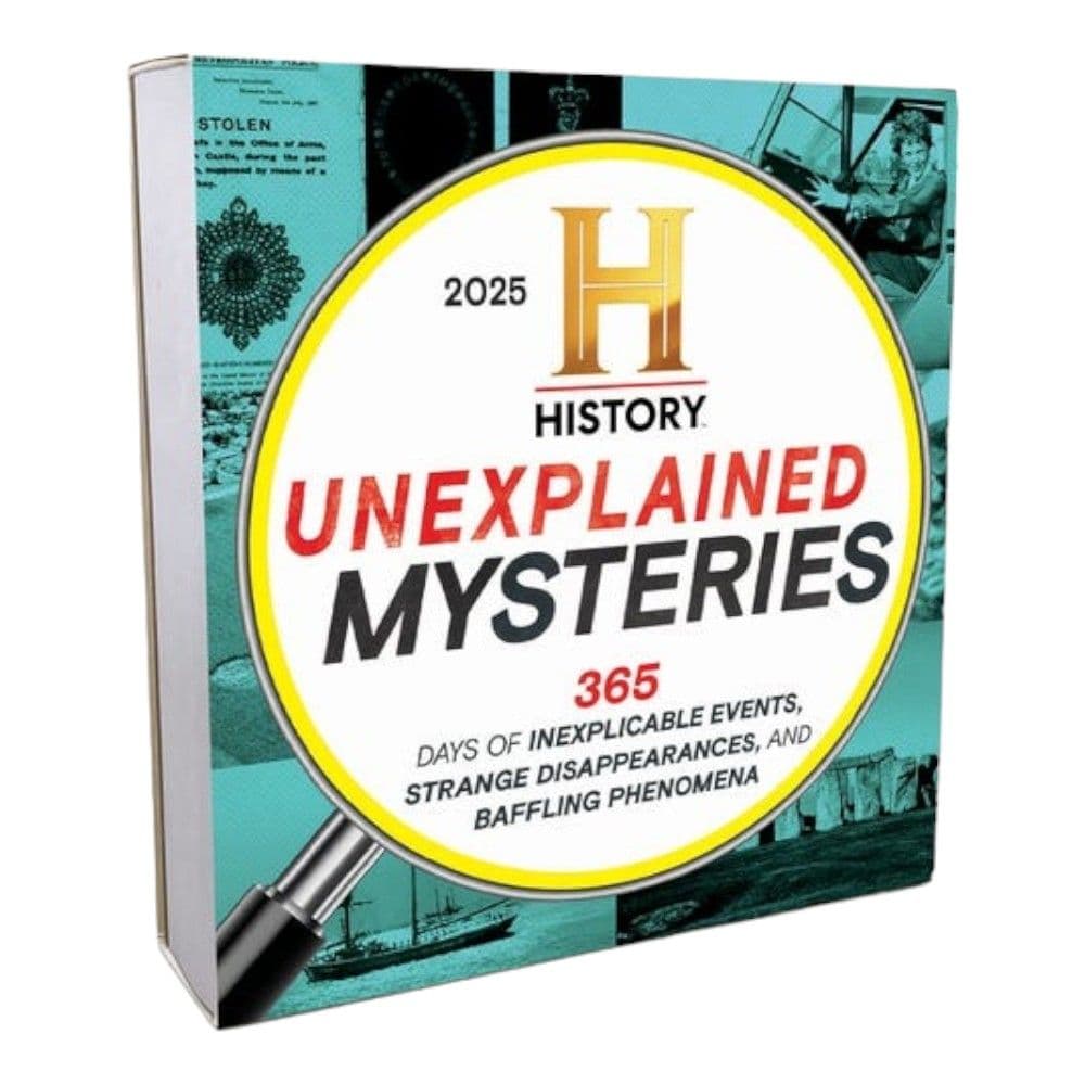 Step into a year of intrigue with the 2025 History Channel Unexplained Mysteries Desk Calendar. Each day unveils a new mystery, from baffling disappearances to unexplained phenomena, making every glance at your calendar a moment of discovery. Perfect for history buffs and mystery enthusiasts alike, this calendar is your daily dose of the unknown and the unresolved. Adhesive binding for easy page turning and a neat layout Compact desk format with dimensions suitable for any workspace Features daily tear-off pages, each with a unique unsolved mystery Includes major international holidays to keep you up-to-date Made with high-quality, durable materials to withstand daily use Transform your desk into a gateway to the past with tales that span the strange and the supernatural. Ideal for gifting to the curious minds in your life or adding a touch of mystery to your own daily routine. Don't miss out on this captivating journey through history's most perplexing events. Order your copy today and start unraveling the mysteries of the world one day at a time!.