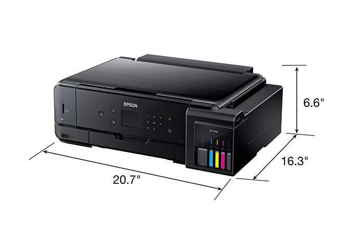 Cartridge-free printing - comes with up to 2 years of ink in the box1 Includes enough ink to print documents up to 14,000 pages black/9,000 color3 - equivalent to about 30 ink cartridge sets2 Save up to 80 percent on ink with low-cost replacement bottles4 - plus easy-to-fill, supersized ink tanks 5 color inks - for printing high-quality documents and photos up to 11" x 17" Versatile paper handling - dedicated paper and photo trays, plus a rear specialty feed6 Easy PC-free printing - with built-in USB and memory card slots5 Large, easy-to-read 2.7" color LCD - simple setup and navigation Complete wireless solution - easily print from iPad, iPhone, Android tablets and smartphones7; includes Wi-Fi Direct8 and Ethernet Exclusive auto-stop ink bottles - uniquely keyed for easy filling of each colorHands-free voice-activated printing** - ask Alexa to print a variety of creative projects and everyday documents, including your to-do and shopping lists. Find out more! Eco Features RoHS compliant Recyclable product10 Epson America, Inc. is a SmartWay Transport Partner11 Better Products for a Better FutureFor more information on Epson's environmental programs, go to www. epson. com/environment. Epson Expression Premium ET-7750 EcoTank Wide-format All-in-One Supertank Printer - Certified ReNew.