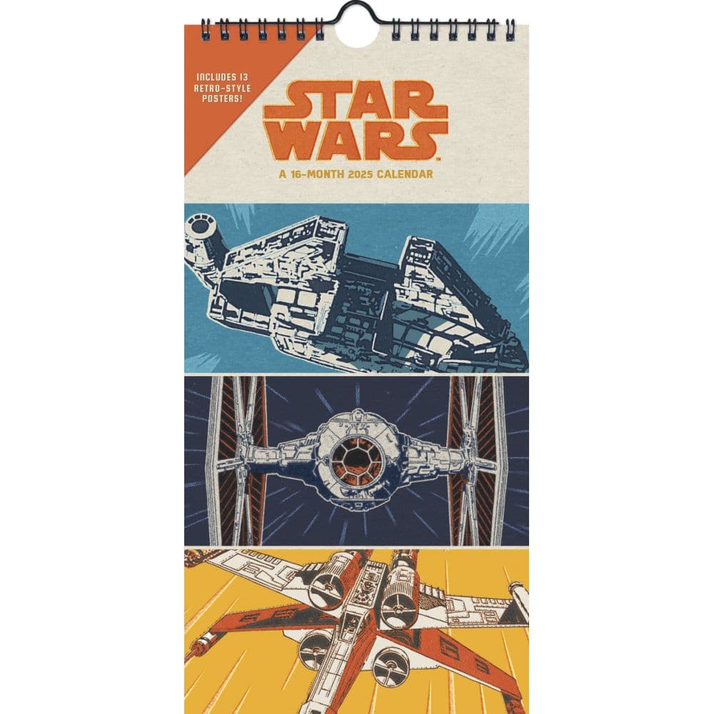 Navigate the galaxy with the Star Wars 2025 Slim Wall Calendar, featuring iconic retro-style artwork from the beloved Star Wars universe. This compact, spiral-bound calendar is ideal for maximizing space while keeping your intergalactic schedule in check. Each month unveils a unique, vintage-inspired Star Wars poster, perfect for decorating your personal space after the month ends. From Yoda's wisdom to the thrilling X-Wing battles, each page brings a piece of the Star Wars saga right into your daily life. Dimensions: 6 x 12.16 inches closed, 6 x 12 inches open, perfect for small spaces like lockers and cubicles Includes 13 retro-style Star Wars posters to collect or display Spiral binding allows for easy flipping and hanging with the included hanger Covers 16 months, from September 2024 to December 2025, including the last four months of 2024 Each page is perforated for easy removal and display as a poster Embrace the Force throughout 2025 and keep your commitments, appointments, and interstellar events organized. This calendar not only serves as a practical tool for planning but also as a collectible item for any Star Wars enthusiast. The vintage designs will add a nostalgic touch to your decor, making it a great gift for fans of all ages. Secure your Star Wars 2025 Slim Wall Calendar today and prepare to celebrate the year with style and efficiency. Perfect for home, office, or school use. Order now and let the Force guide your days!.