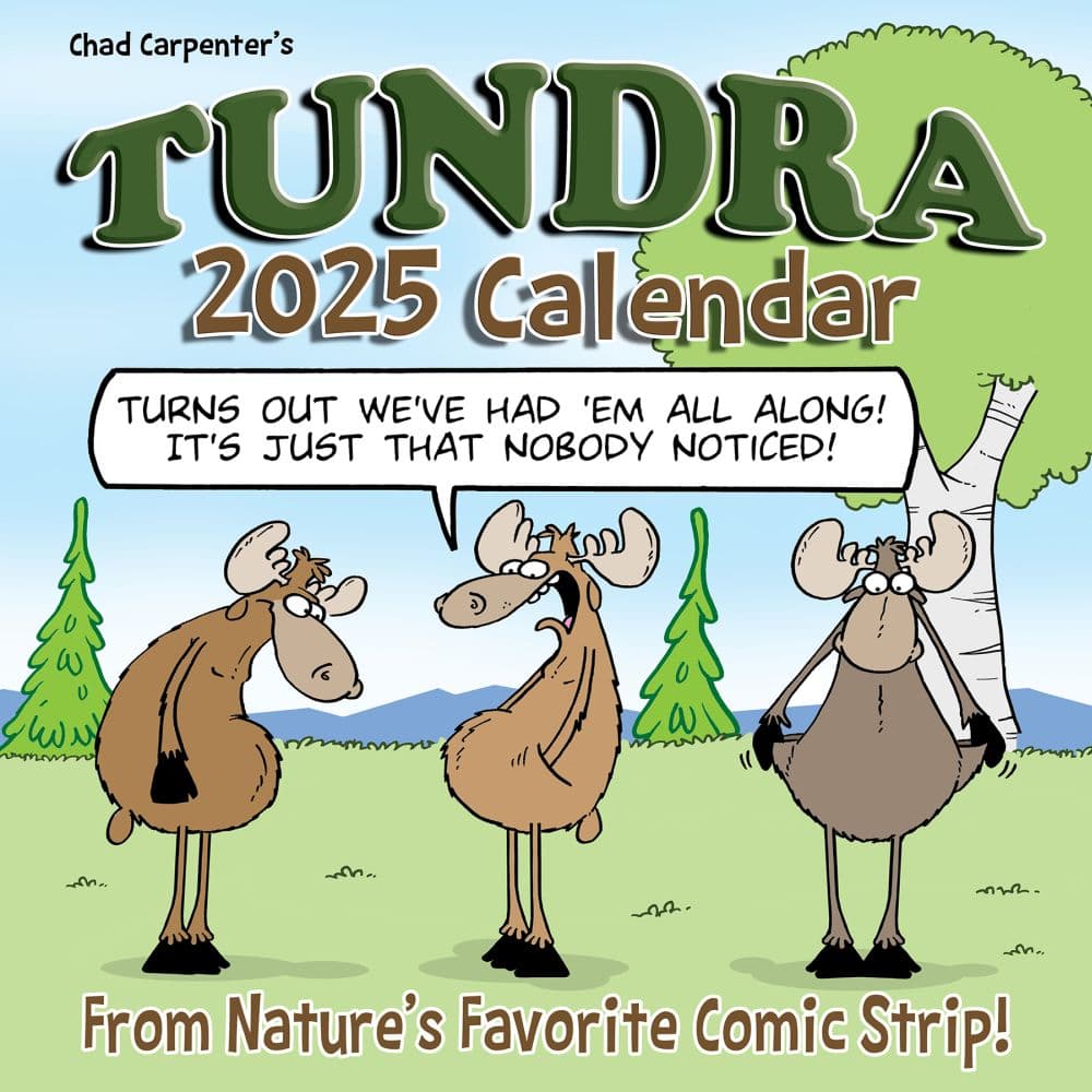 Start your 2025 with laughter and organization with the Tundra 2025 Wall Calendar by Willow Creek Press. Featuring 12 hand-picked, full-color cartoons from Chad Carpenter's beloved comic strip, this calendar brings the quirky humor of man vs. animal encounters in the Alaskan wilds right to your wall. Each month unveils a new, hilarious scenario that promises not just to keep you organized but also entertained. 12" x 12" wall calendar with large grid spaces for easy scheduling and note-taking. Includes an 18-month calendar span from July 2024 to December 2025 for extended planning. Features US and international holidays, moon phases, and a look at the upcoming and previous month for efficient planning. Printed on high-quality, FSC-certified paper with soy-based inks, supporting environmental sustainability. Stapled binding ensures durability while maintaining a flat hanging look for easy reading and writing. Each page of this calendar is a mini escape to the wilds of Alaska with engaging, colorful artwork that doubles as charming wall decor for your home or office. Beyond keeping track of important dates and events, this calendar serves as a daily reminder to find humor in everyday life. Don't miss out on making your days a bit lighter and more organized. Order the Tundra 2025 Wall Calendar now and enjoy a year filled with laughter and exceptional organization!.