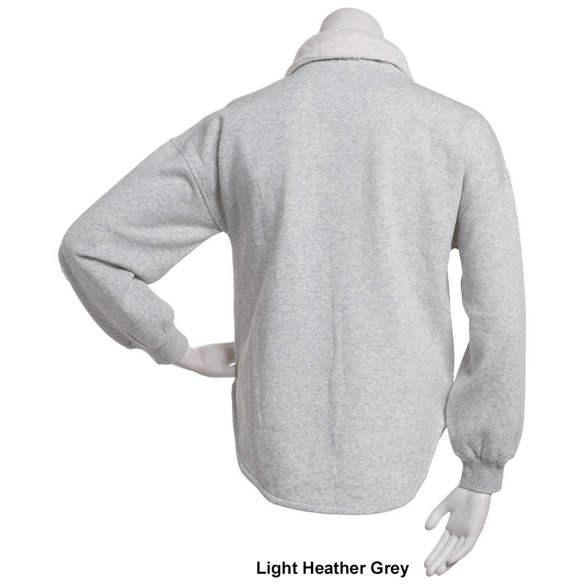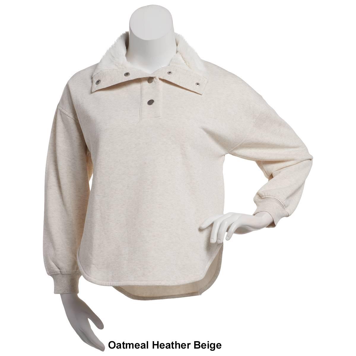 Pattern: Marled Sleeve Length: Long Sleeve Neck: Mock Neck featuring Faux Fur Trim Oversized fit Snap button placket Soft fleece lining.