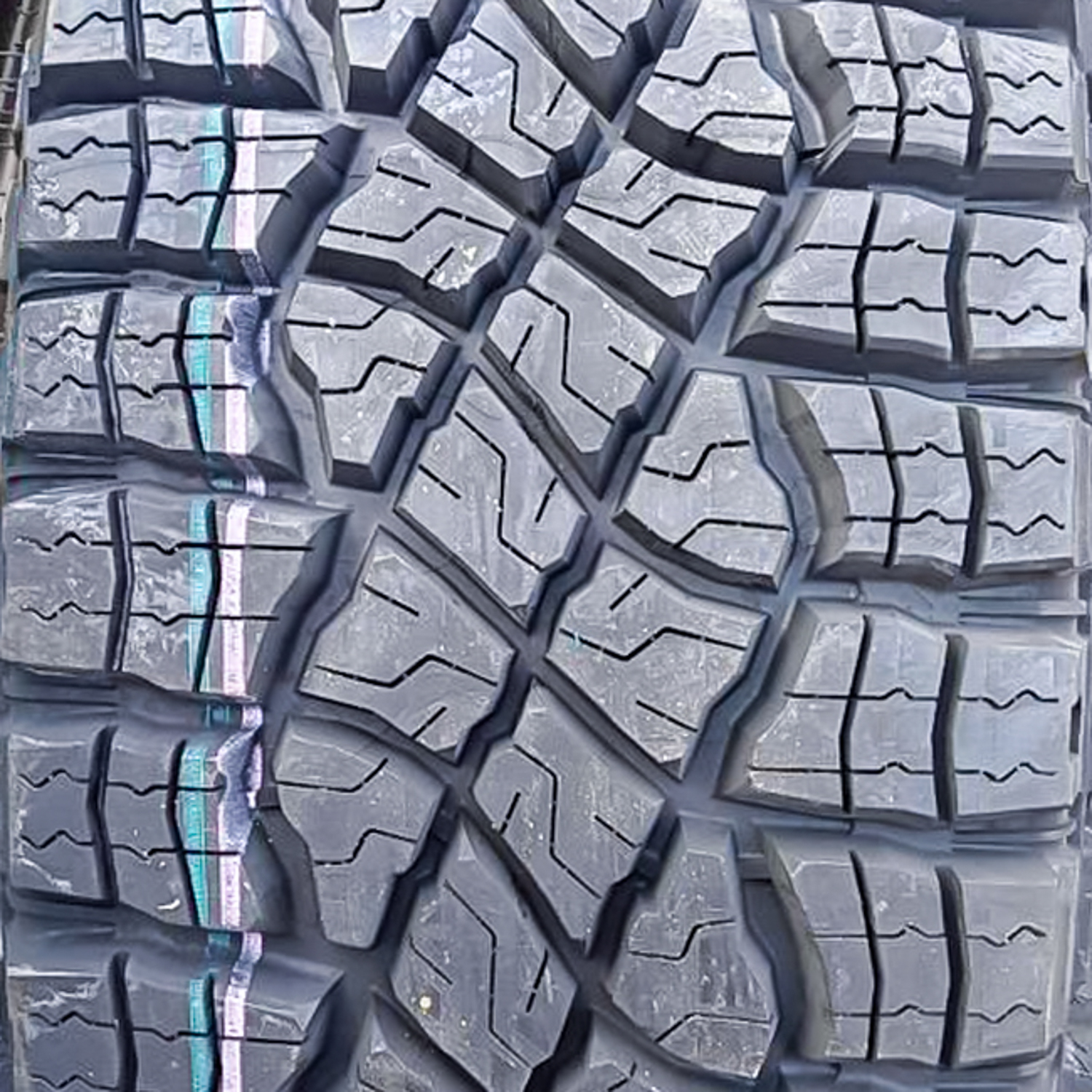 Goodyear Wrangler Territory MT. FEATURES AND BENEFITS: Mud terrain traction; Upgraded controllability; Improved load durability; . OVERVIEW: The Goodyear Wrangler Territory MT is a mud terrain, all season tire manufactured for light trucks.The tire features an aggressive tread design. It utilizes the staggered block placement and ideal groove placement to upgrade the soft, loose, and uneven terrain traction. They help to enhance the forward motion on versatile surfaces, optimizing the tire's exceptional off-road application. Better terrain traction ensures the tire's deep mud and loose dirt terrain traction, while the footprint is kept clean. They disperse mud and snow from the footprint, preventing them from blocking the surface contact. Additionally, the self-cleaning ability avoids stone retention, as rocks cannot drill into the tread area.Optimizing the surface contact at all times increases the controllability and maneuvering. The stable footprint's terrain contact enables the tire to upgrade the steering responsiveness and driving stability. This promotes exceptional steering response time and accuracy to the driver's commands. It also secures the structural stability against the driving pressure, upgrading the performing power. The special wrap-around shoulder design, with the siping placement, helps to enhance the cornering and braking abilities. This further boosts the driver's control over the vehicle at all times.The Goodyear Wrangler Territory MT also improves load durability. The stronger internal structure does not allow the tire to deform under the load and driving pressure. As the tire does not deform, it is able to upgrade the load capacity throughout the performance.The intended purpose of Mud Terrain tire types is off-road use. They are not designed for regular highway driving.Manufacturers recommend changing tires every 10 years. As long as tires are properly stored before they are sold, the year of their manufacture will not shorten their service life.