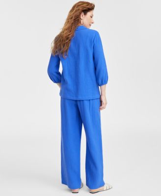 Jm Collection Womens Cotton Embellished Top Wide Leg Gauze Pants Exclusively At Macys