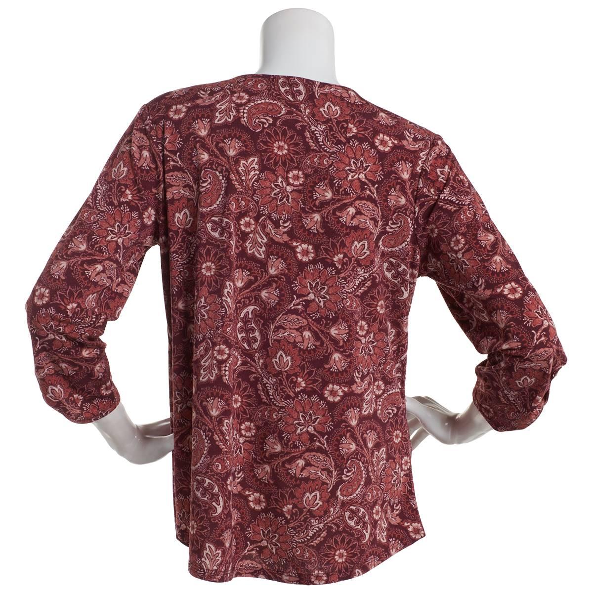 Pattern: Vintage Floral, Paisley Sleeve Length: 3/4 Sleeve Neck: Keyhole Neck Rounded hemline Adjustable interlock sleeves Crepe fabrication Cool iron.