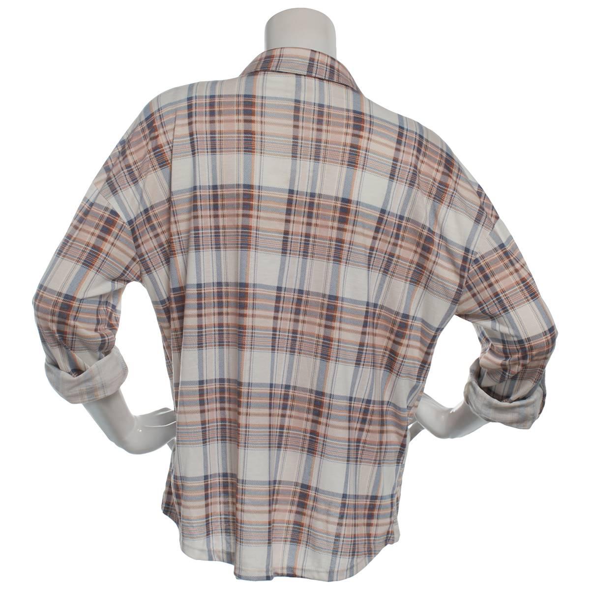 Pattern: Plaid Sleeve Length: 3/4 Sleeve Neck: Round Neck Collar: Spread Roll tab sleeves Full button front closure Adjustable pull-cord hem High-low rounded hem Cool iron.