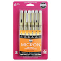 Sakura Pigma Micron Pens - Set of 6, Black, Fine and Bold