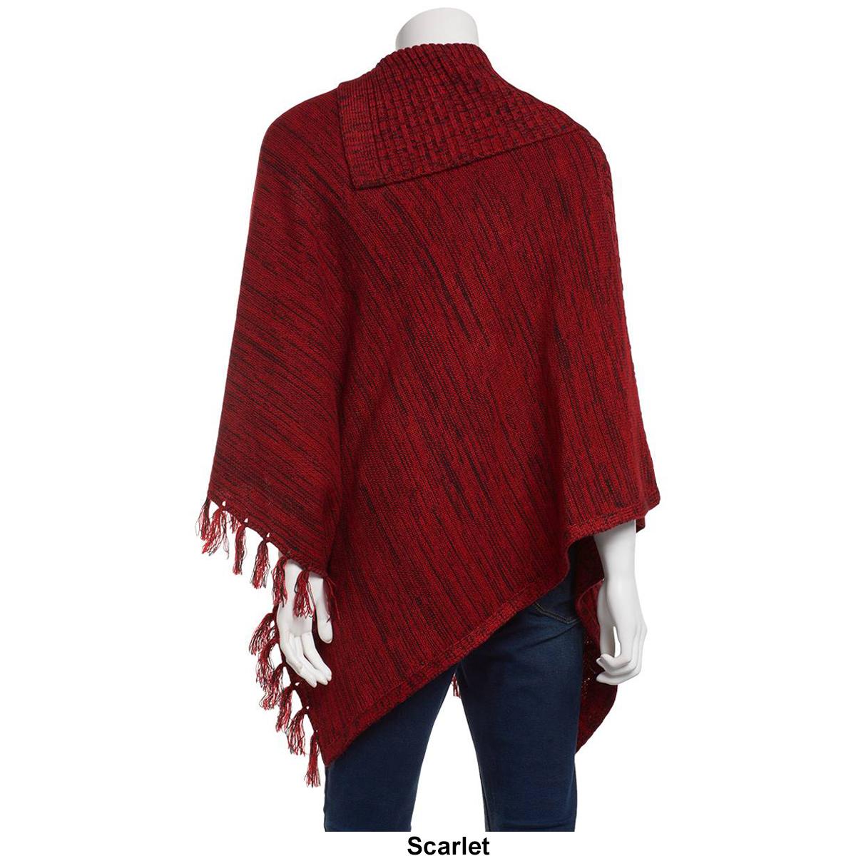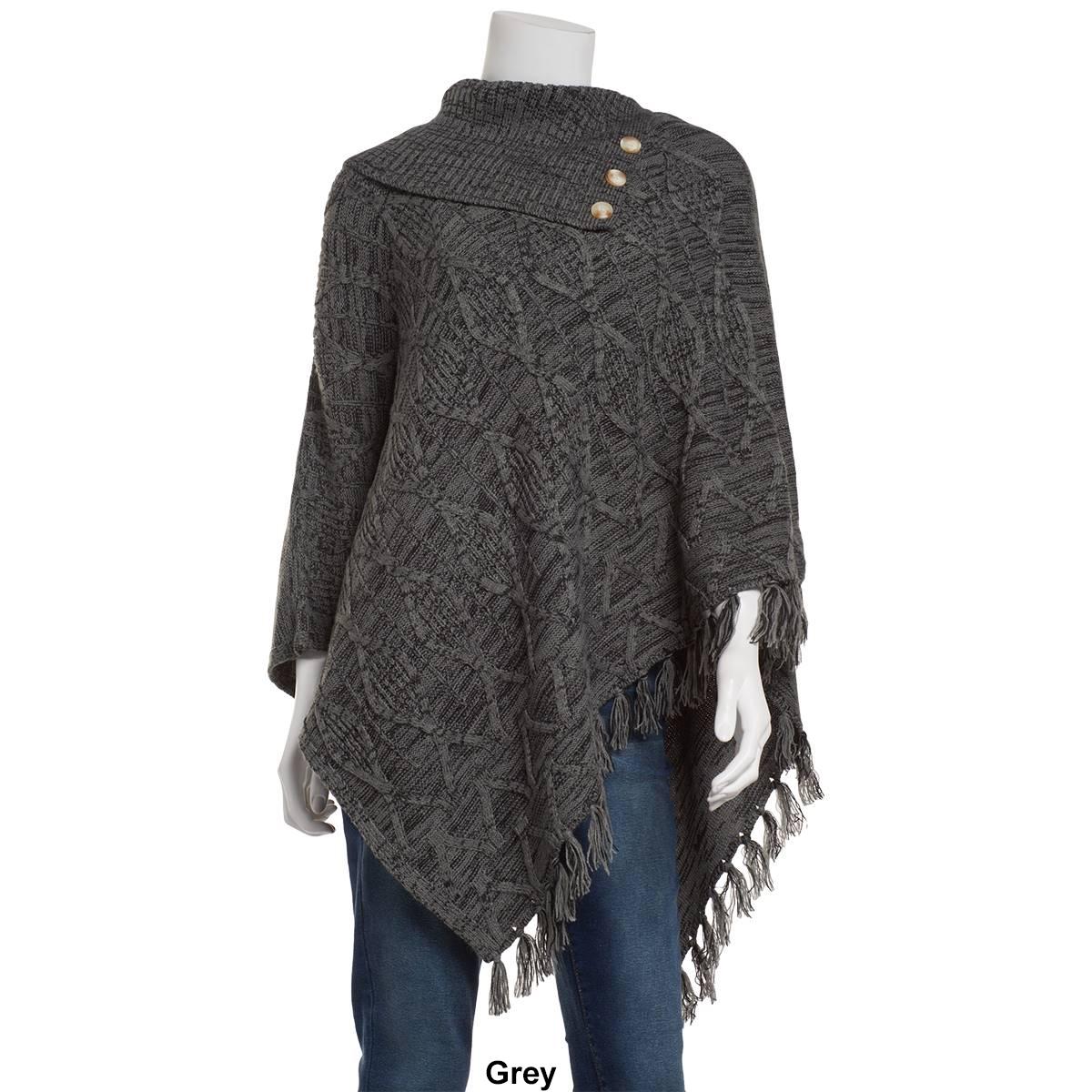 Womens Tint & Shadow Marled Cabled Split Neck Fringe Poncho