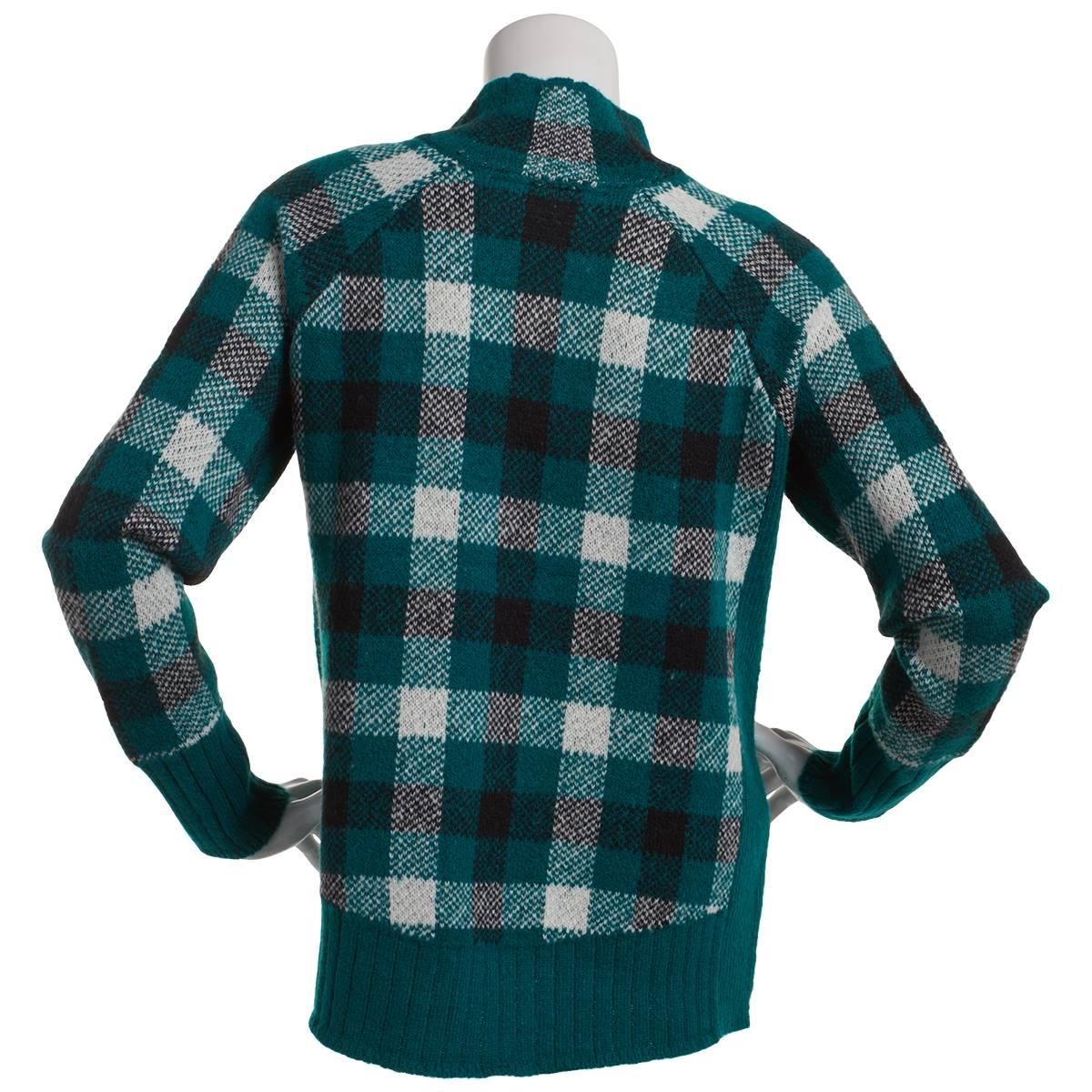 Womens Inner Circle Long Sleeve Plaid Mock Neck Pullover Sweater